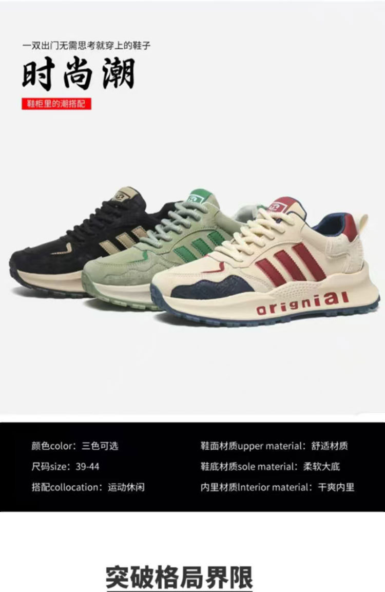 Jike 남성 신발 복고풍 세 줄무늬 두꺼운 밑창 아빠 신발 2025 새로운 스포츠 캐주얼 신발 남성 다용도 파라 신발스토어 가기