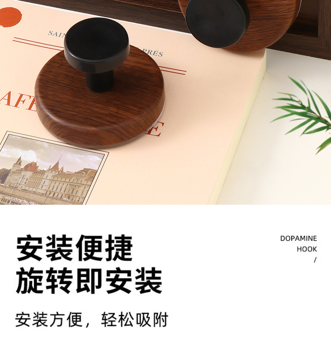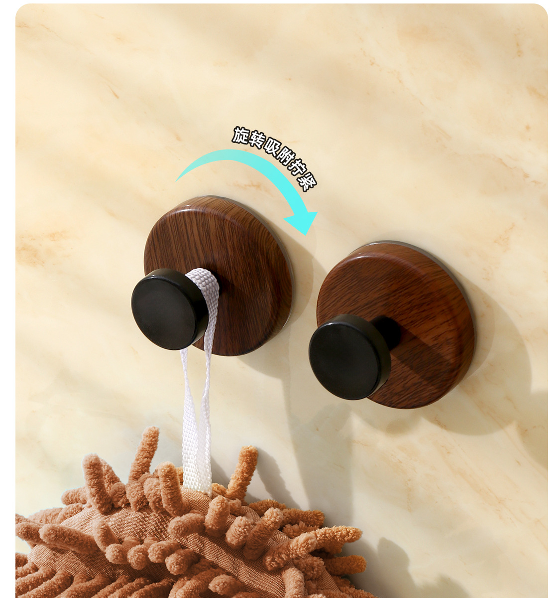 호두나무 무늬 흡입컵, 펀치 없는 도어 후면 후크, 옷 걸이 후크, 고급 벽걸이형 싱글 후크, 현관 강력 접착 후크