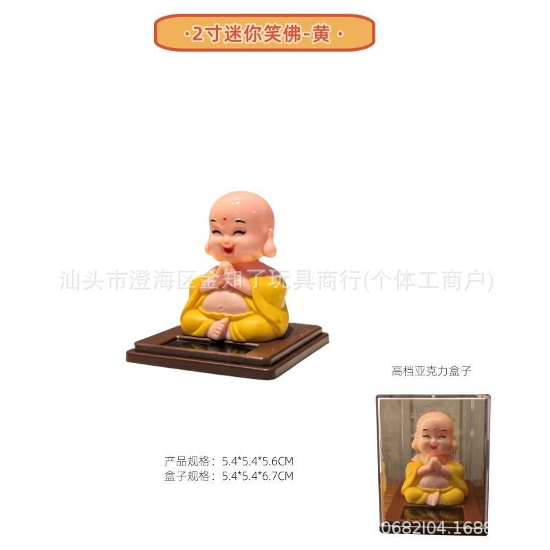 • 2inch 웃는 부처님-노란 옷-먼지 덮개 포함 [5.4*5.4*5.6CM]