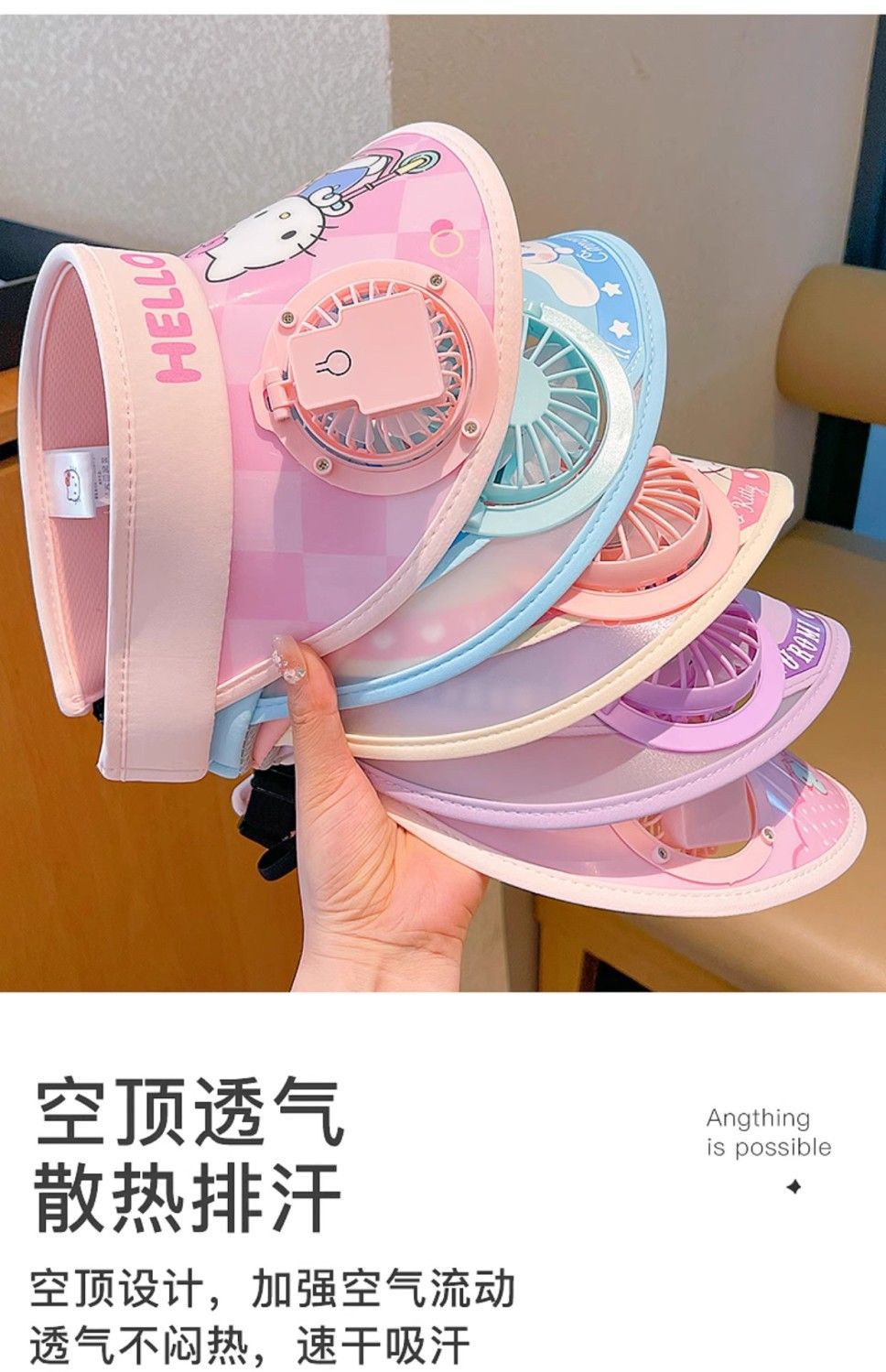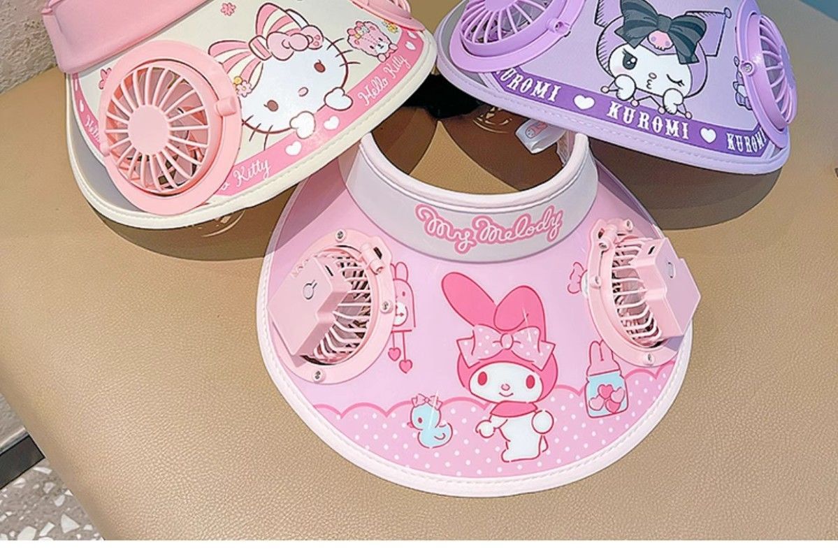 어린이 Sanrio 업그레이드 된 이중 팬 모자 여름 태양 모자 소년과 소녀 야외 태양 모자 아기 태양 모자