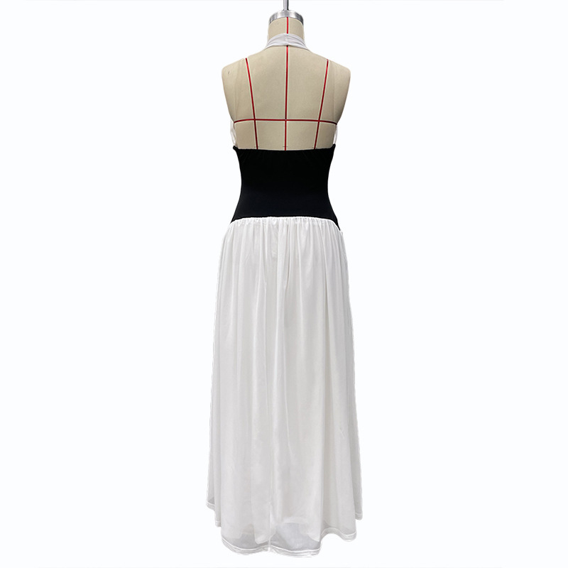 유럽과 미국의 국경 간 여름 새로운 스타일 유럽과 미국의 패션 대비 색상 섹시한 깊은 V 민소매 홀터넥 허리 대형 밑단 드레스스토어 가기