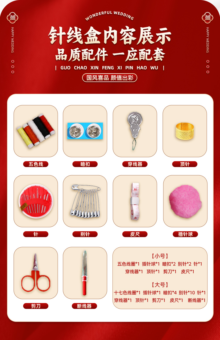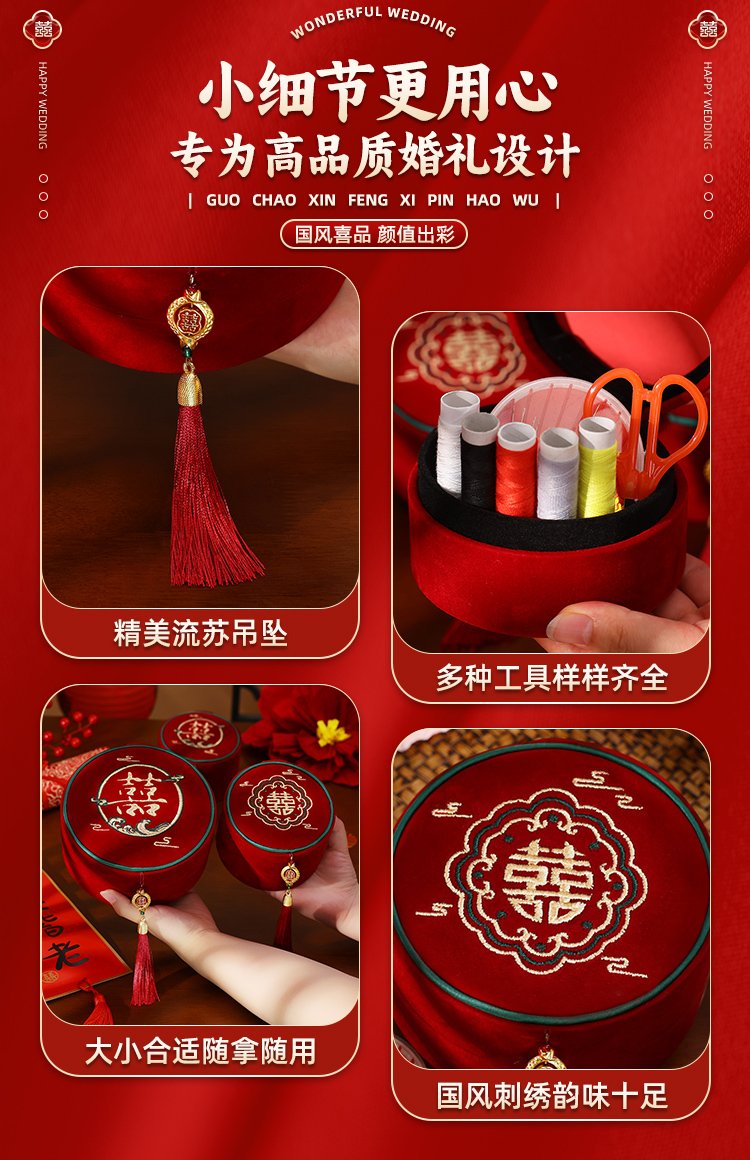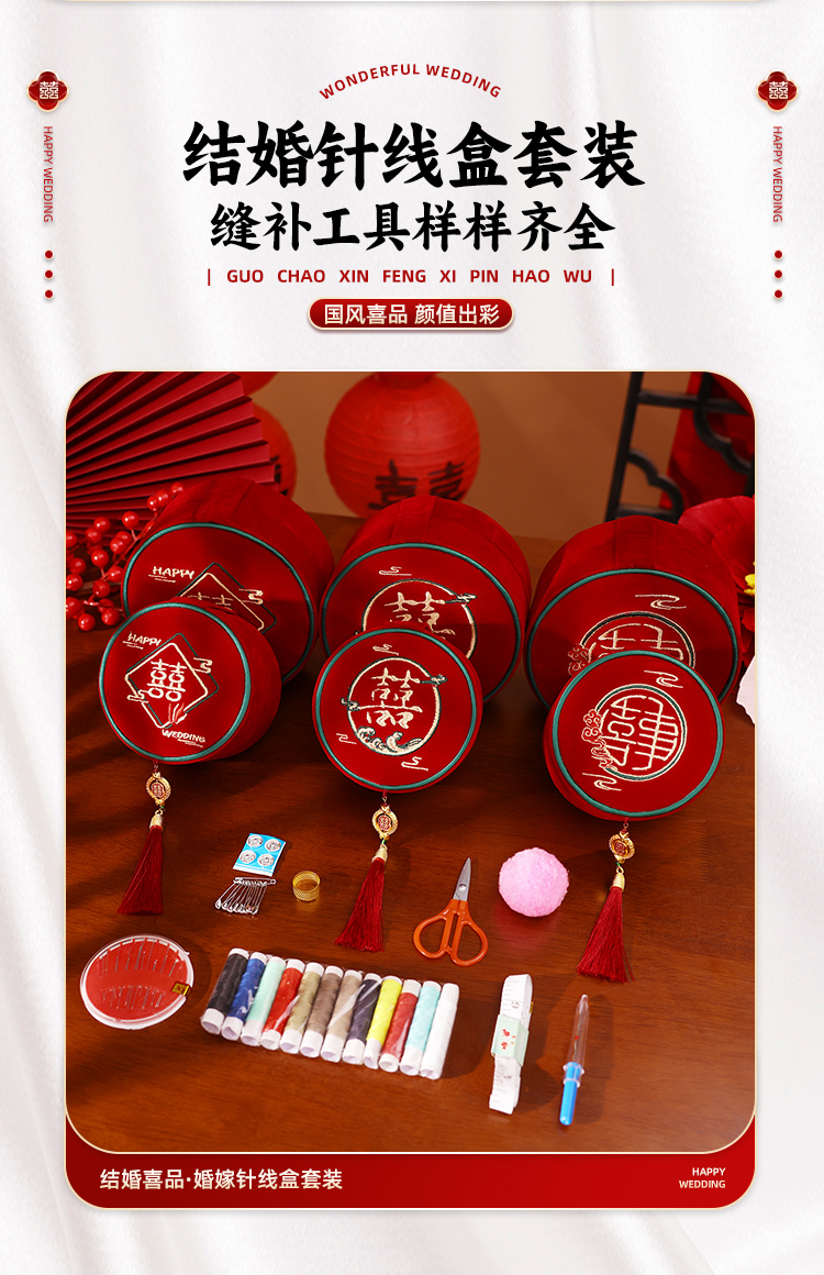 Qingkai 바느질 상자, 결혼식 가정용 여성의 실용적인 결혼 선물, 신혼 부부를 위한 선물 세트, 국가 트렌드 바느질 가방