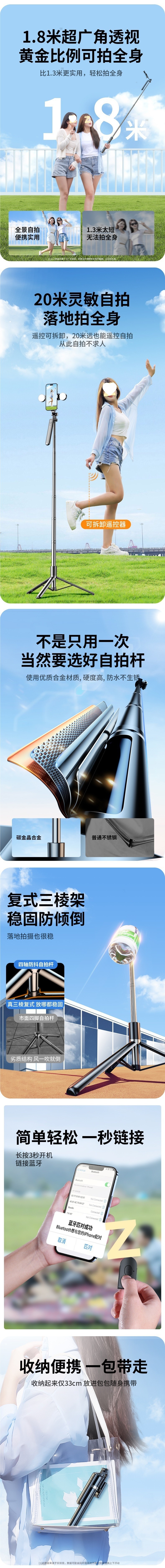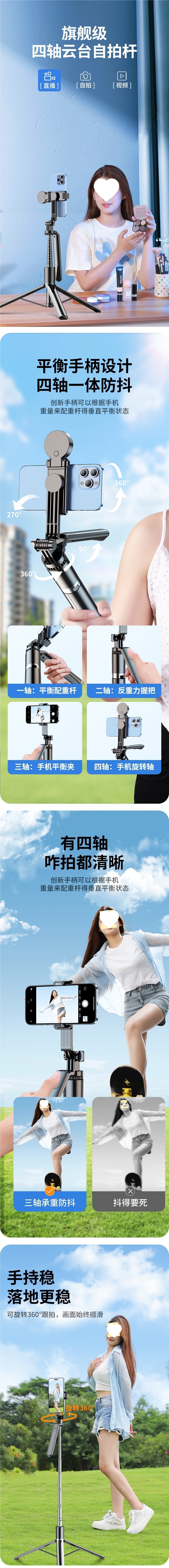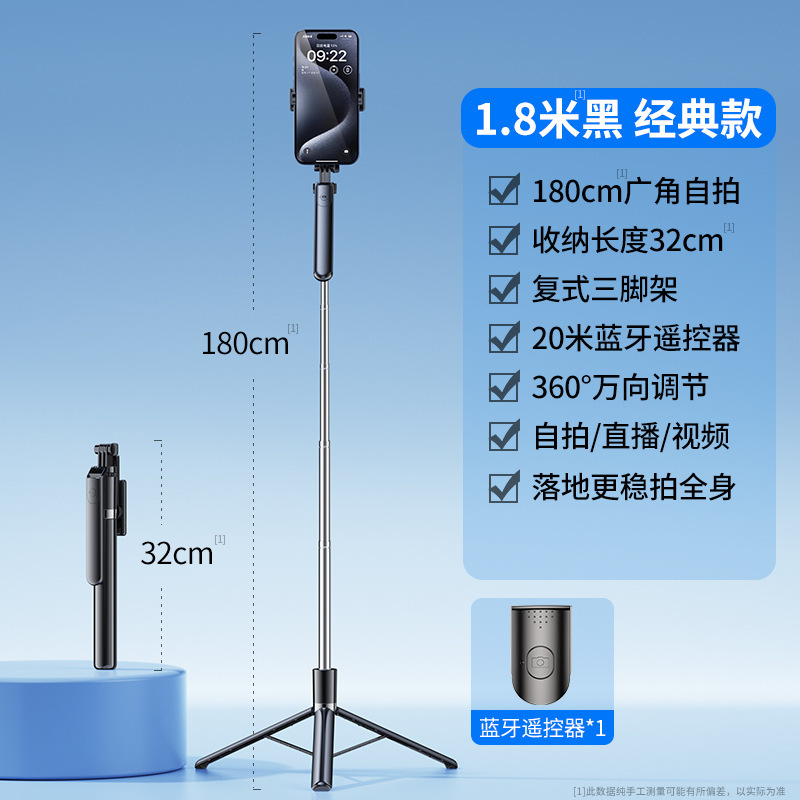 • 블랙【1.8m 손떨림 방지 모델】4축 손떨림 방지★브이로그 후속촬영★탄소강 샤프트