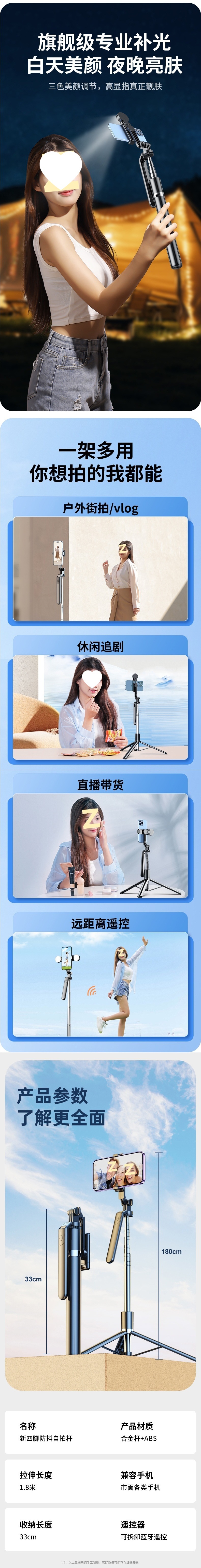 • 1.3m + 뷰티 램프 x1 [탄소 합금강◆리모콘촬영 블루투스] 복층삼각형