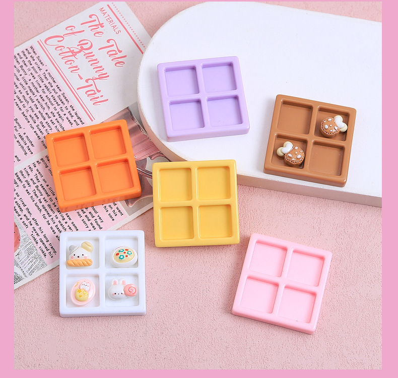 만화 멀티 컬러 4 사각형 그리드 플레이트 수제 diy 크림 접착제 수지 액세서리 작은 액세서리 쥬얼리 재료 패키지 도매