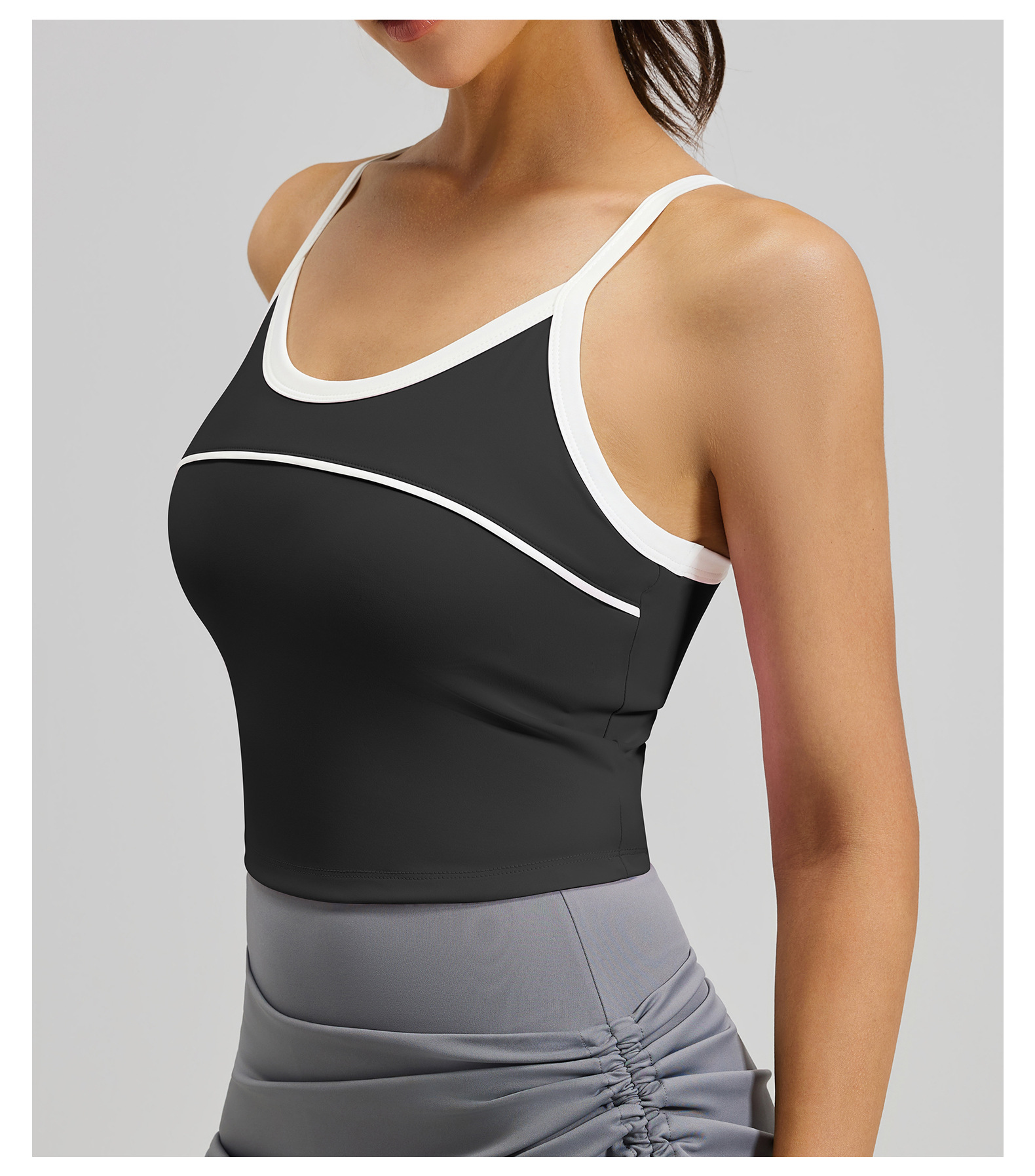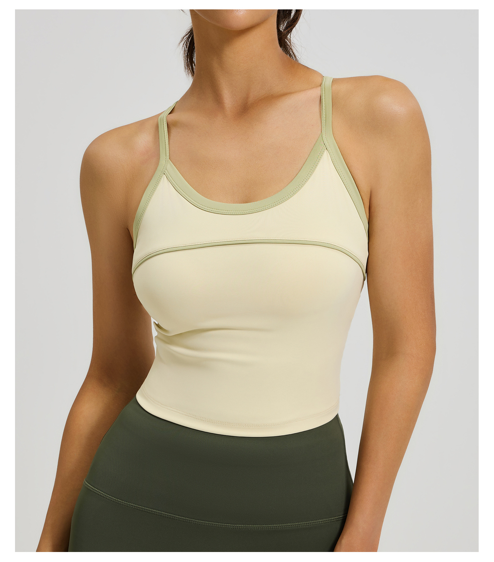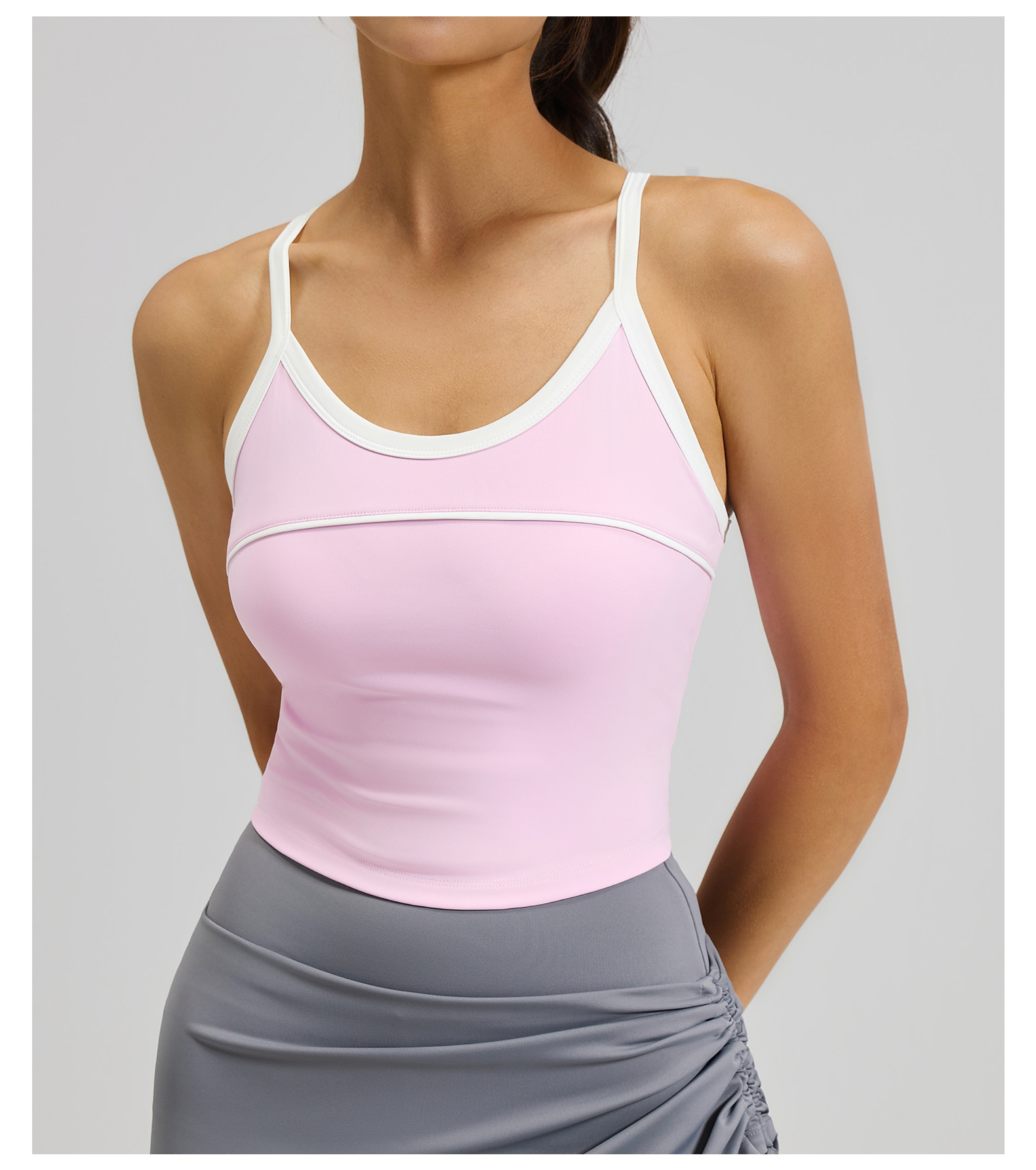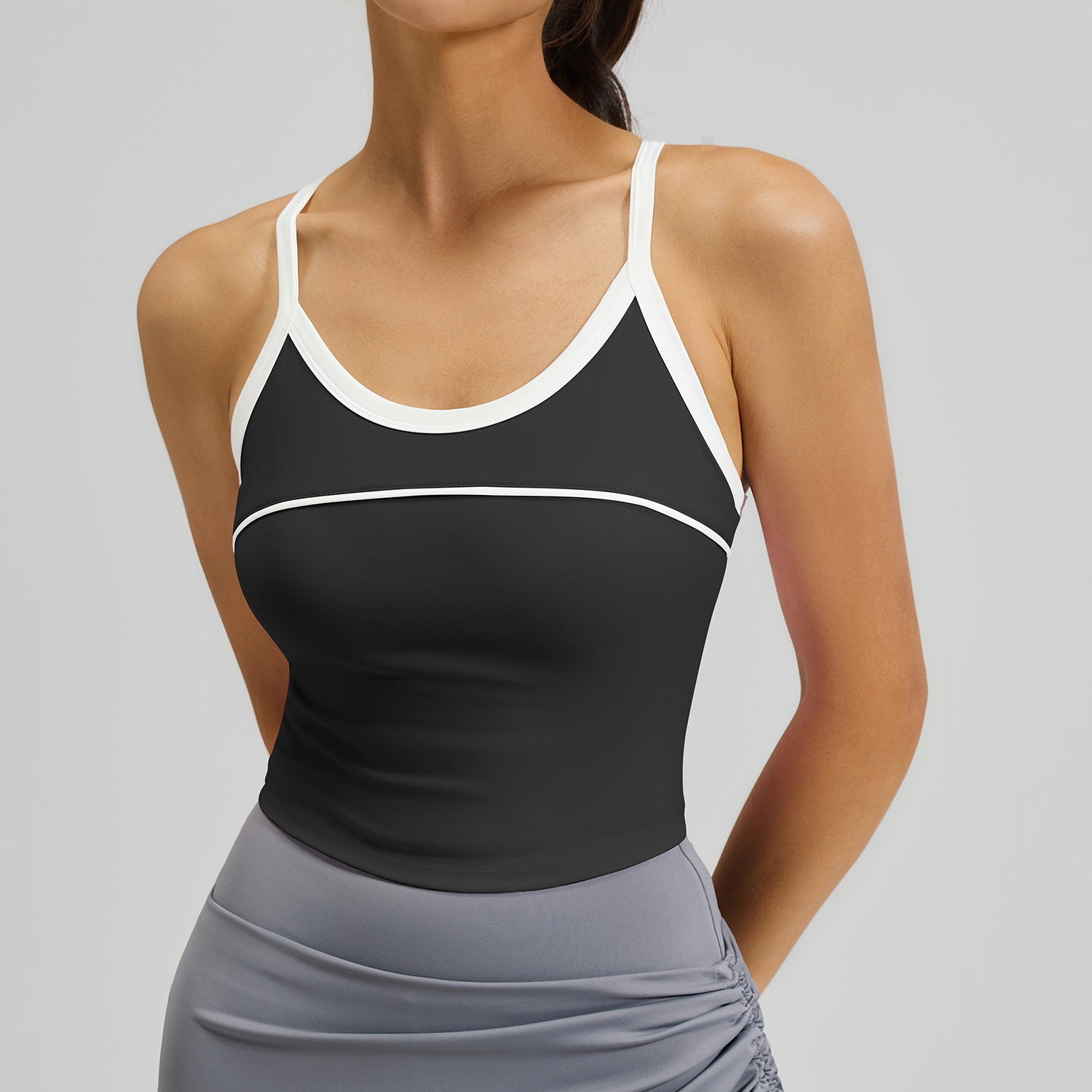 크로스보더 배색 스트라이프 스포츠 탱크탑 고정형 패드 삼각형 디자인 뷰티백 충격방지 푸쉬업 스포츠 요가 브라스토어 가기