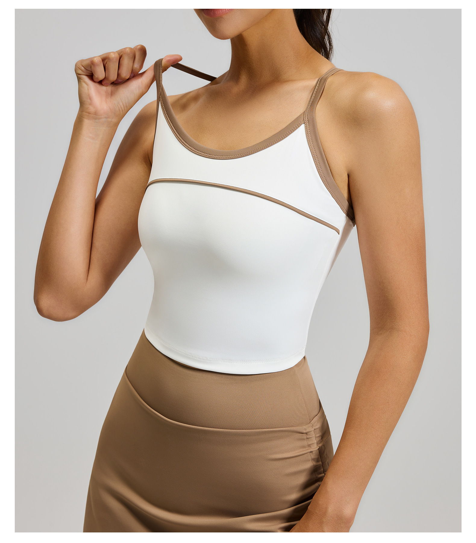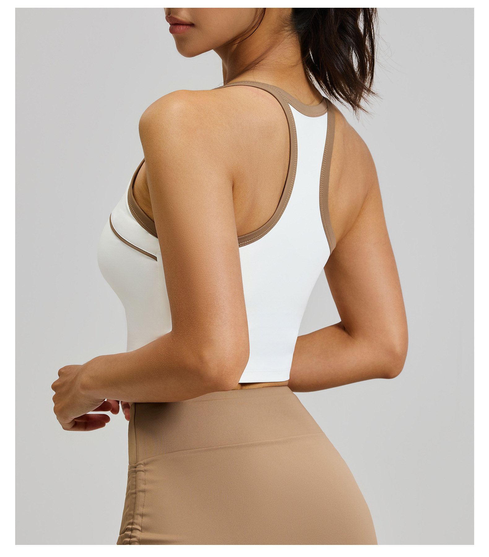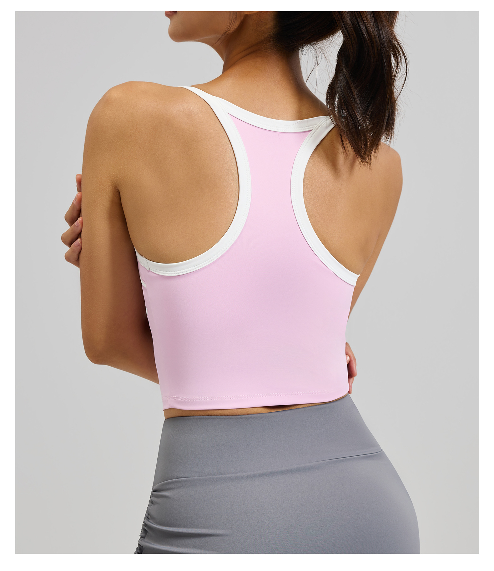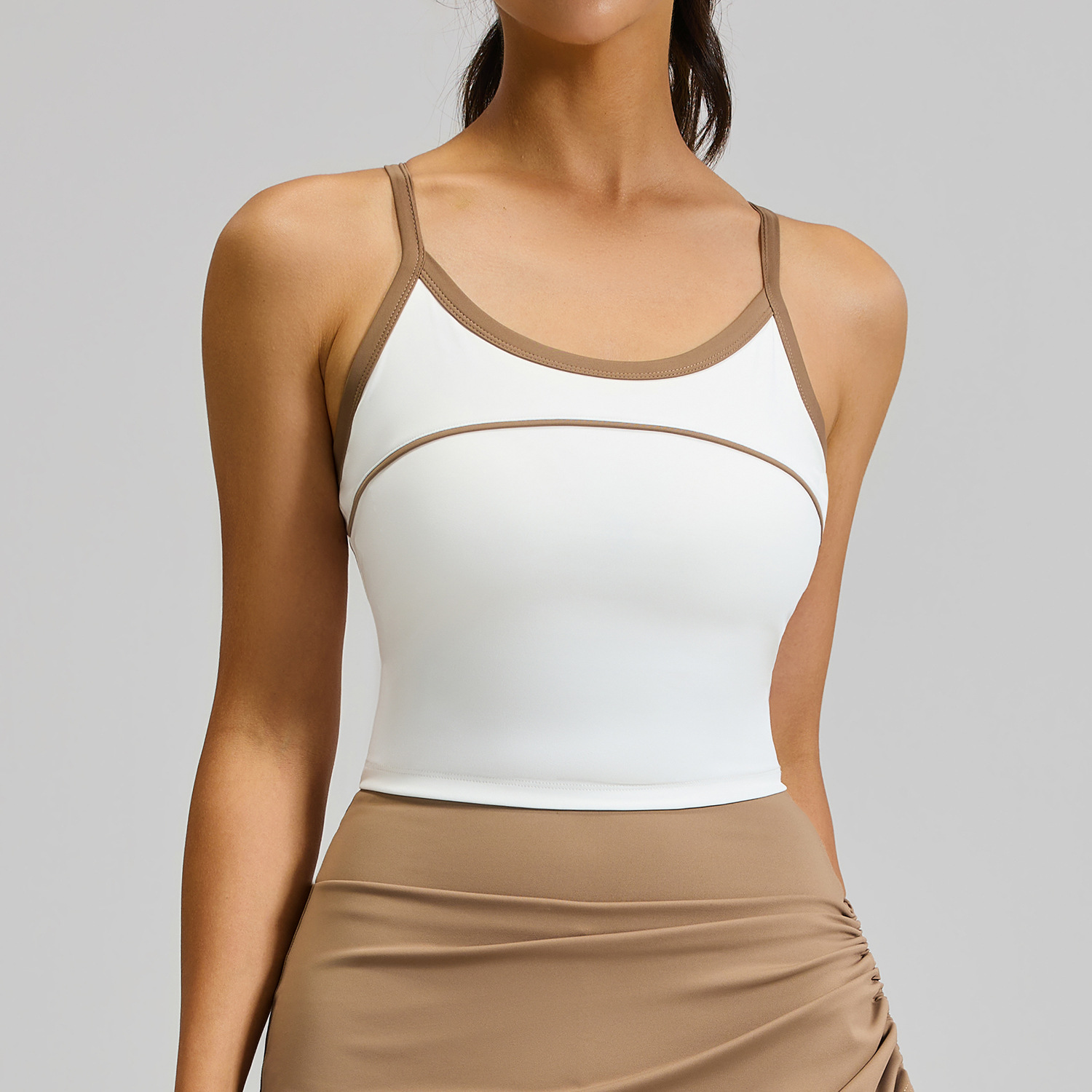 크로스보더 배색 스트라이프 스포츠 탱크탑 고정형 패드 삼각형 디자인 뷰티백 충격방지 푸쉬업 스포츠 요가 브라스토어 가기