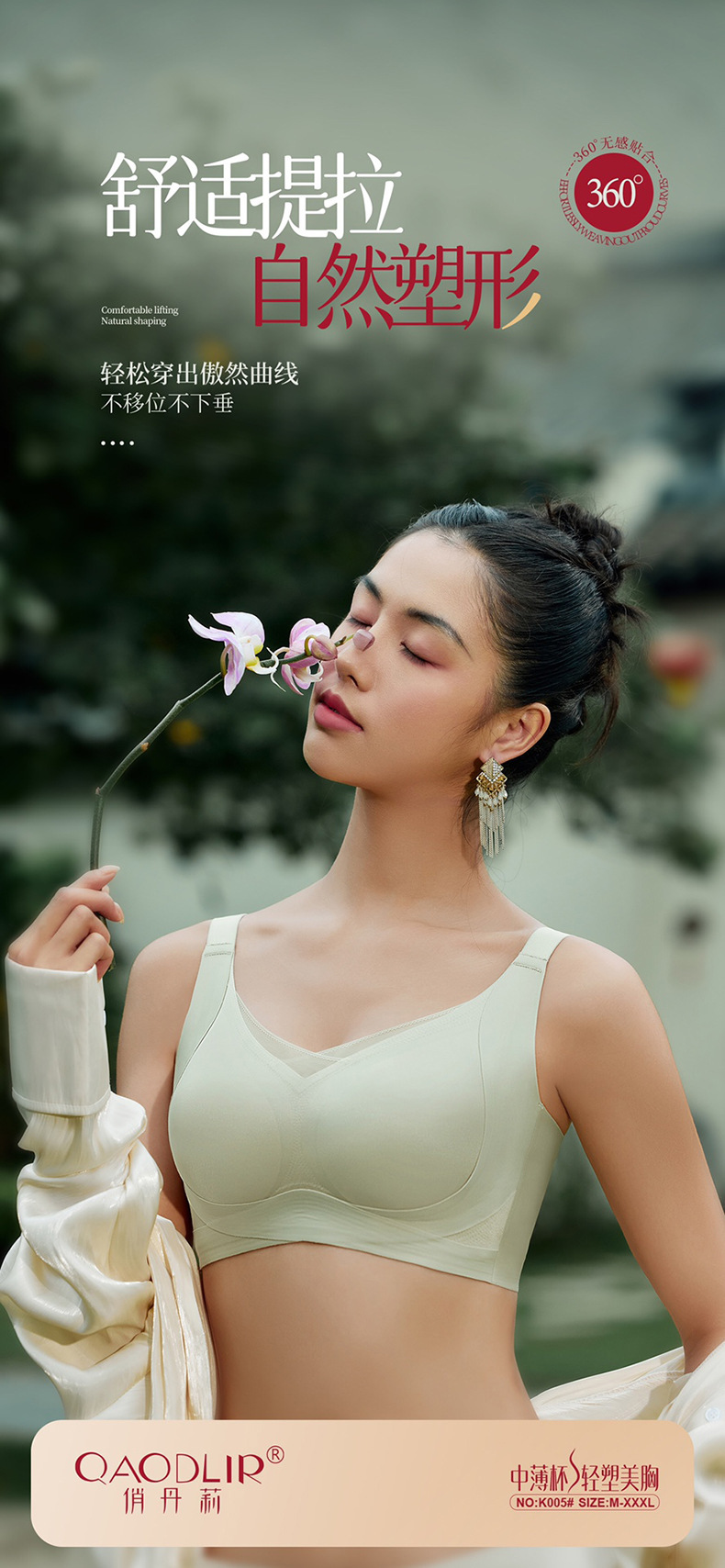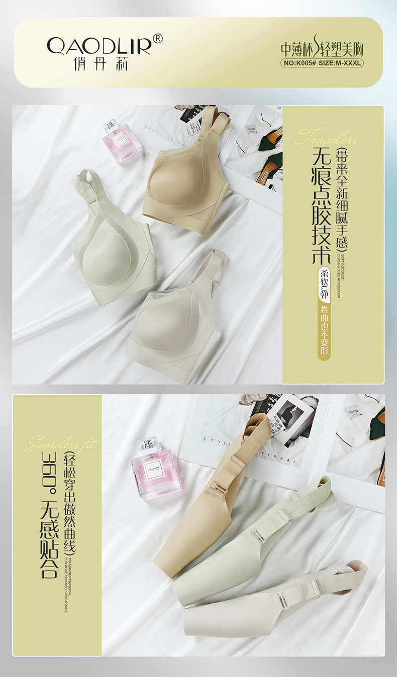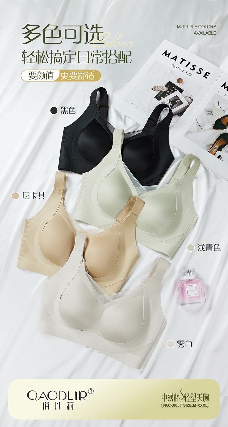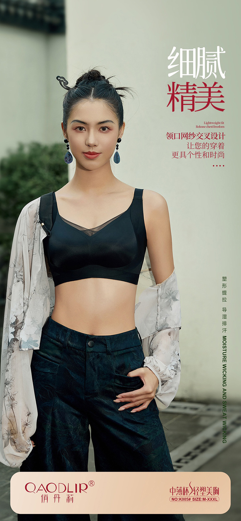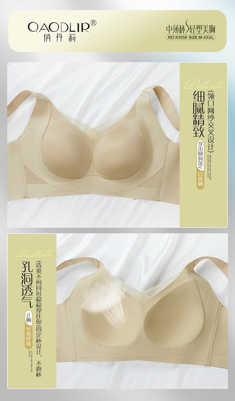 Qiaodanli K005 튜브 탑 메쉬 중간 얇은 컵 이음매없는 와이어 프리 라이트 스포츠 브라 리프팅 사이드 뼈없는 브라