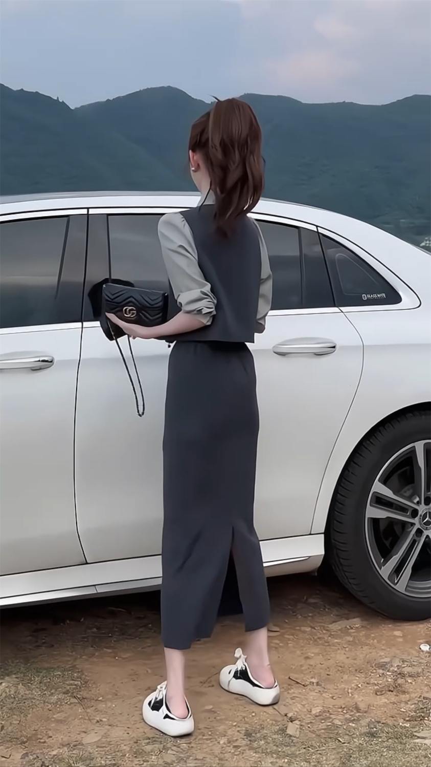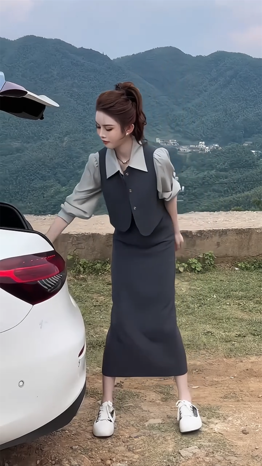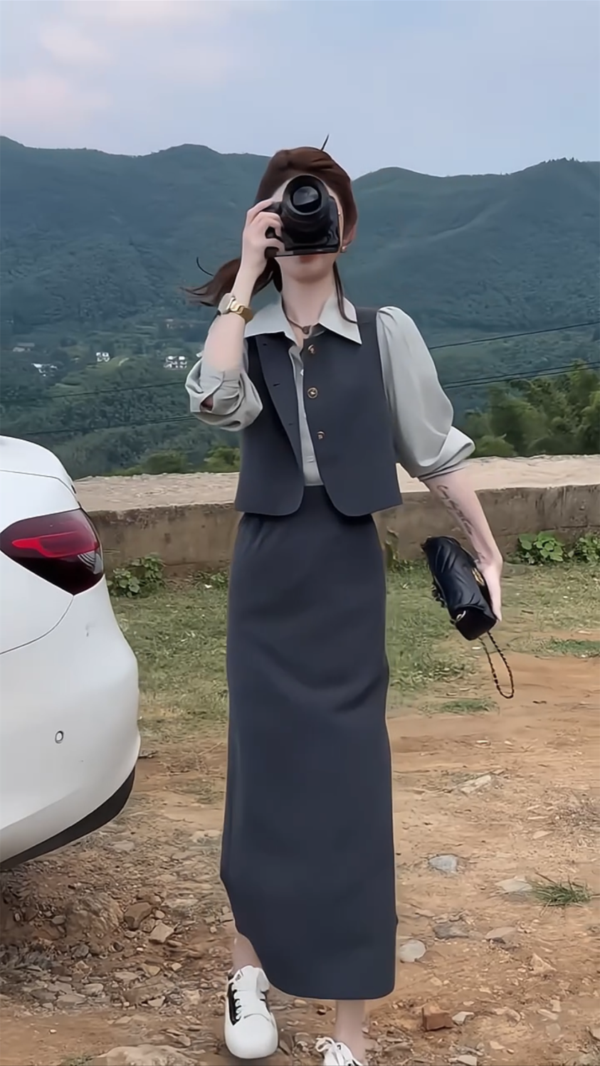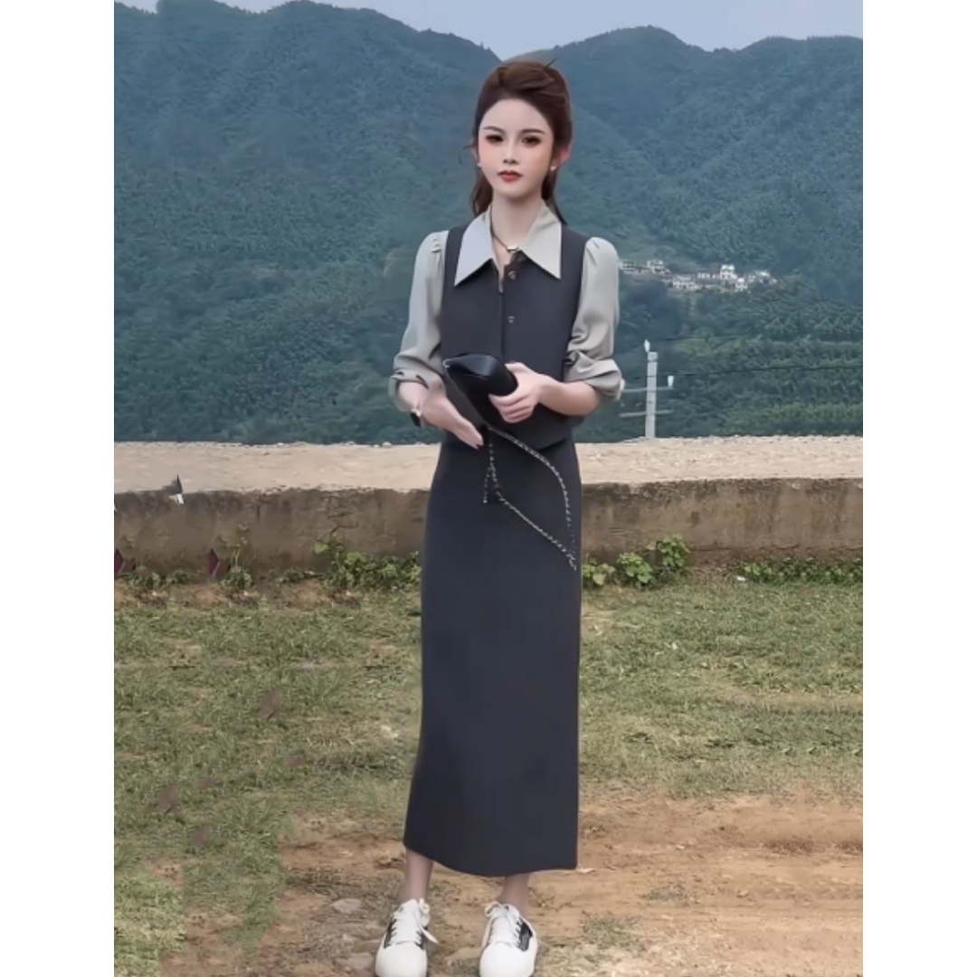 여성을위한 기질 노화 감소 정장 스커트 2025 봄 새로운 긴팔 셔츠 조끼 바지 슬리밍 3 피스 세트 여성 패션스토어 가기