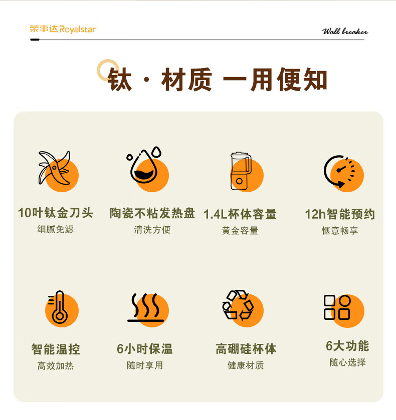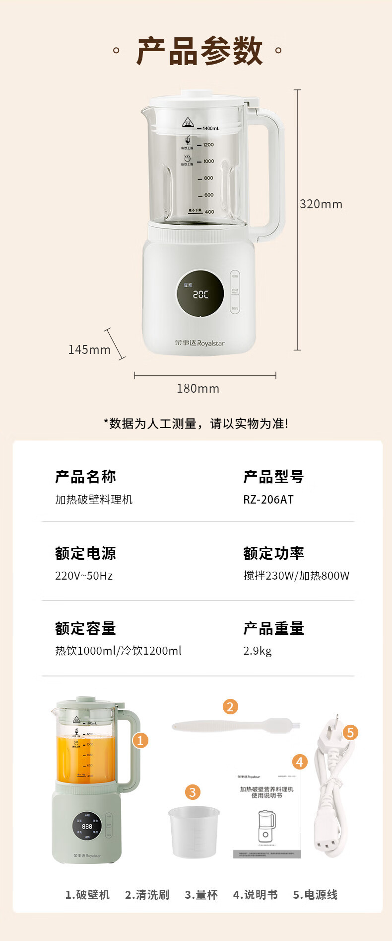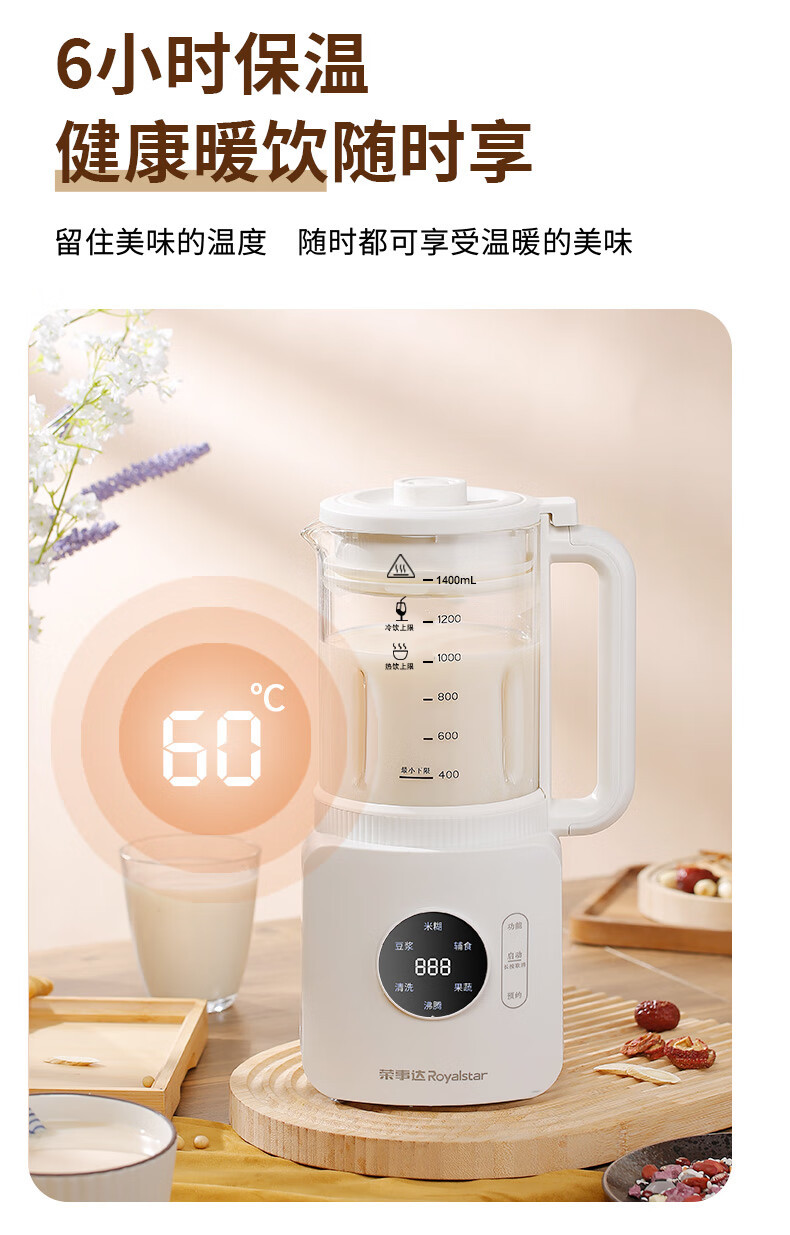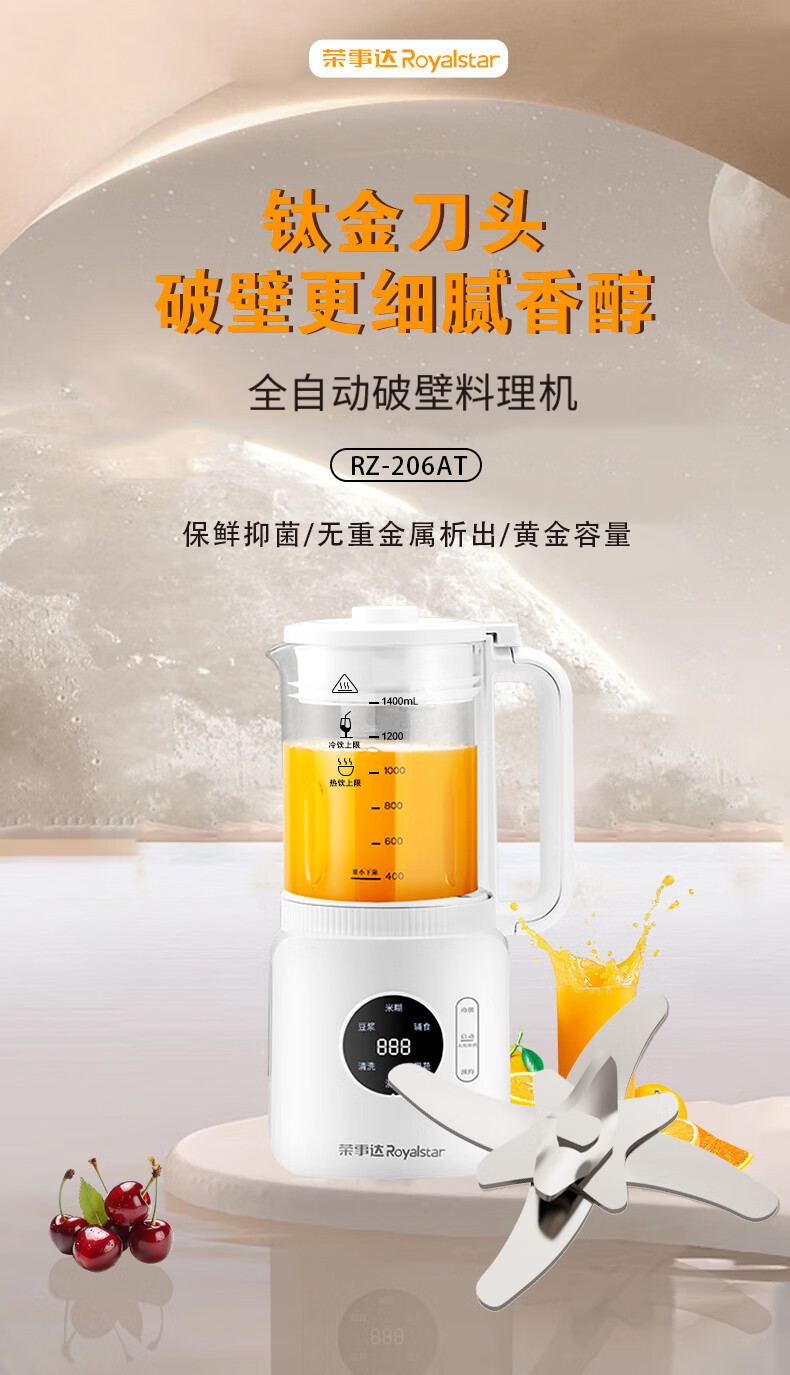 Royalstar 벽 파괴 기계 두유 기계 주스 기계 소형 요리 기계 주스 기계 1.4L 티타늄 칼날 RZ-206AT스토어 가기