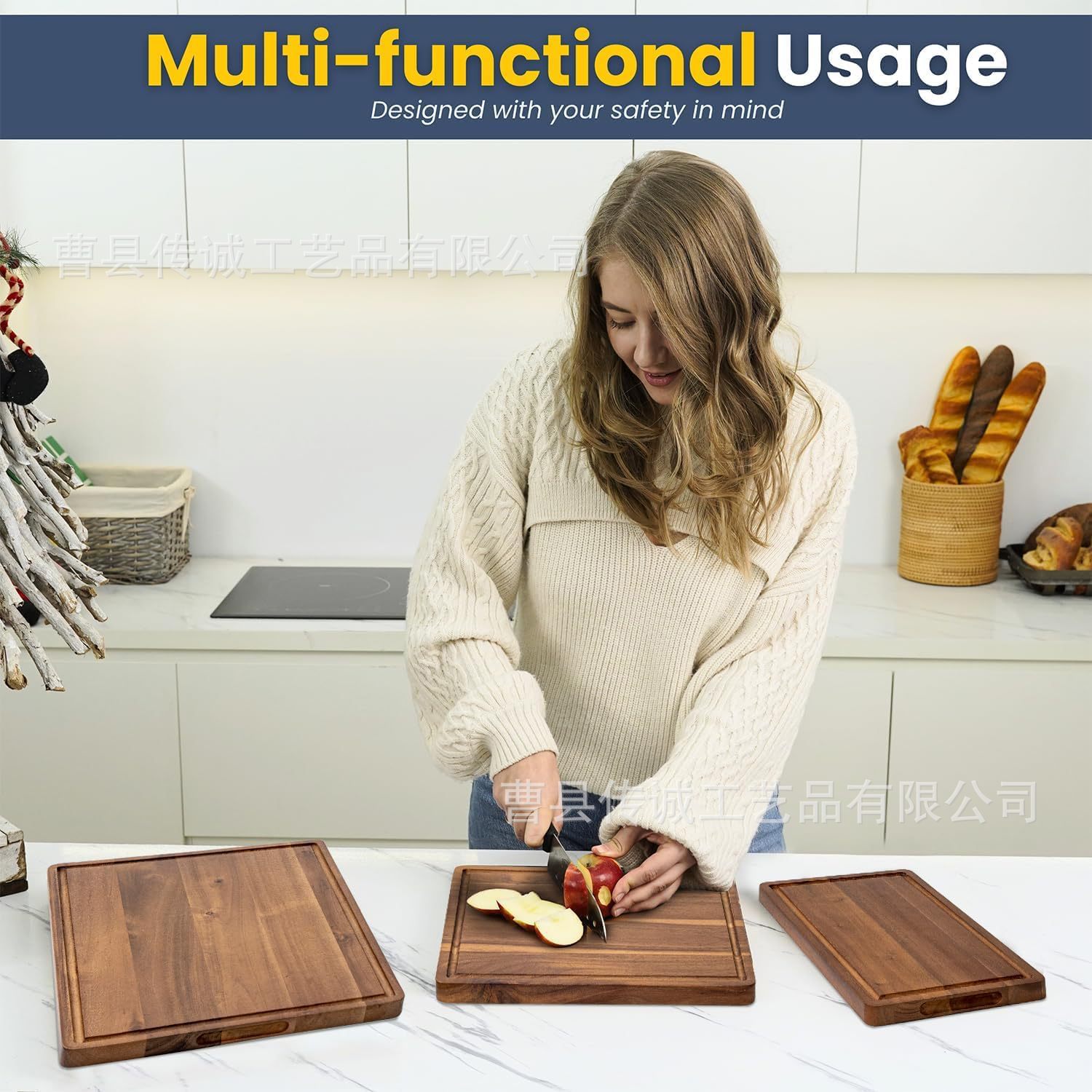 크리 에이 티브 아카시아 나무 디너 트레이 주방 직사각형 단단한 나무 도마 세트 가정용 나무 빵 스테이크 트레이