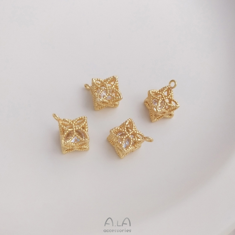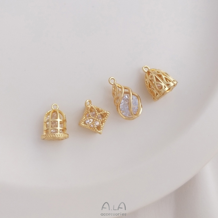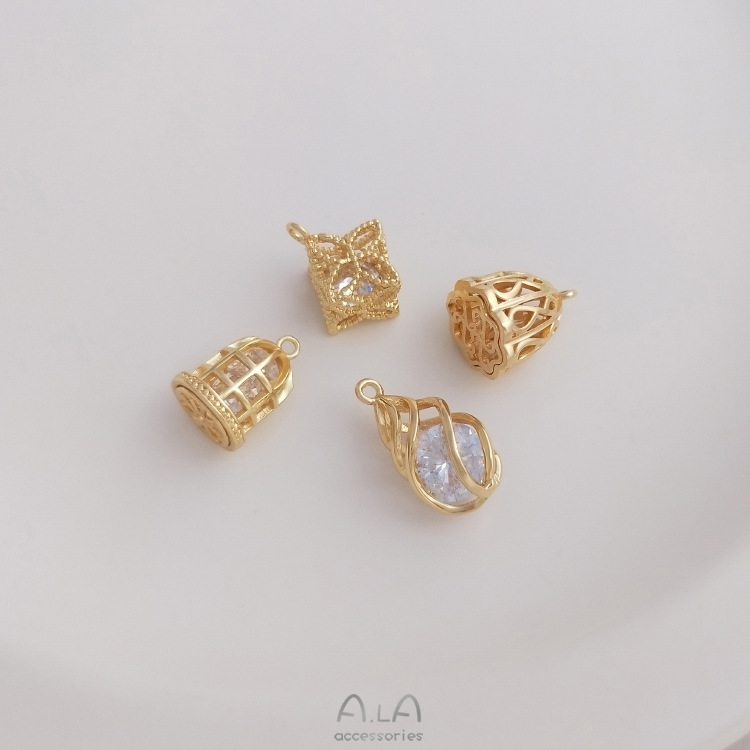 내부 지르콘 스마트 펜던트 14K 금도금 네잎 클로버 물방울 새장 연꽃 펜던트 diy 쥬얼리 펜던트스토어 가기
