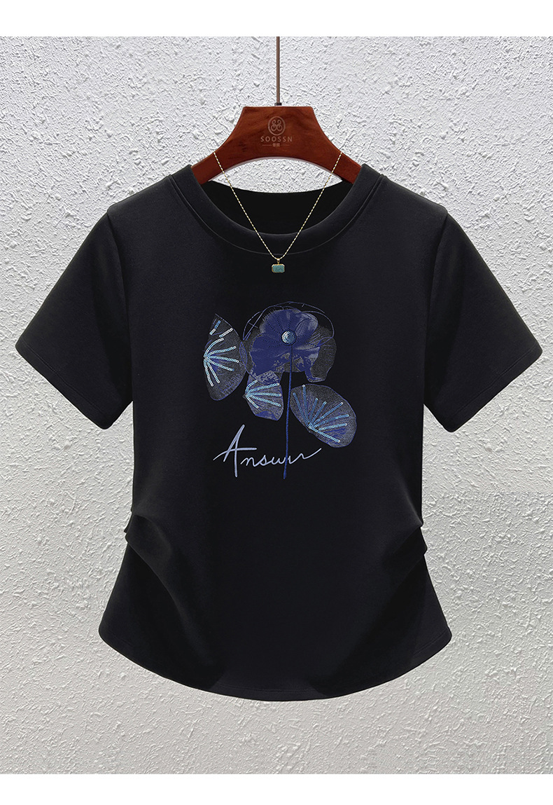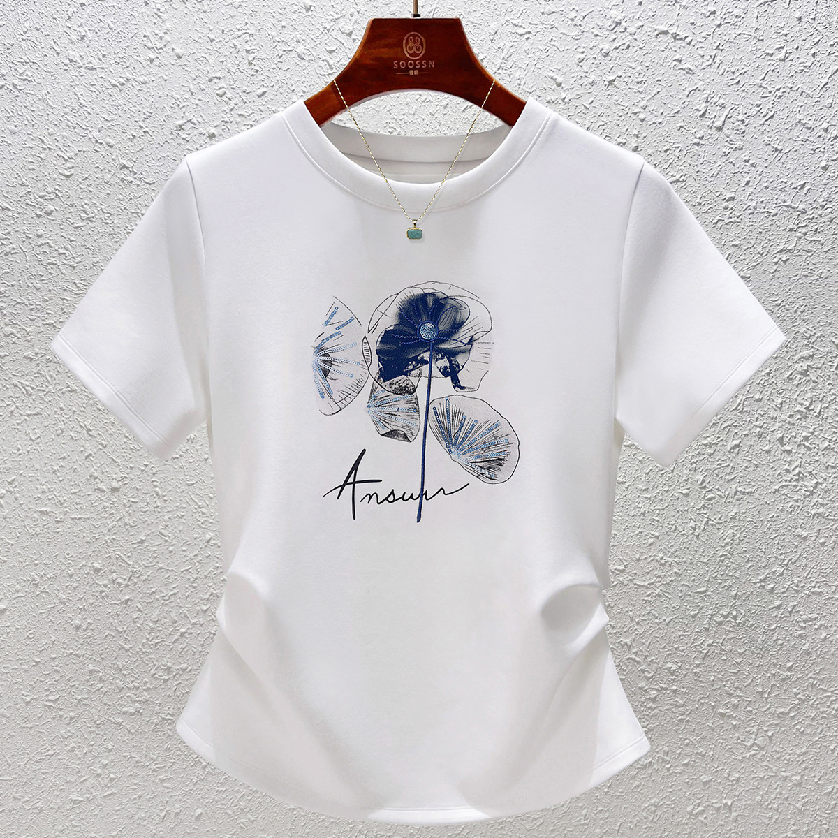 여성을위한 하이 엔드 코튼 티셔츠 흰색 반팔 티셔츠 슬림 디자인 중국 스타일 틈새 여름 착용 2025 여성을위한 새로운 스타일 1688 탑