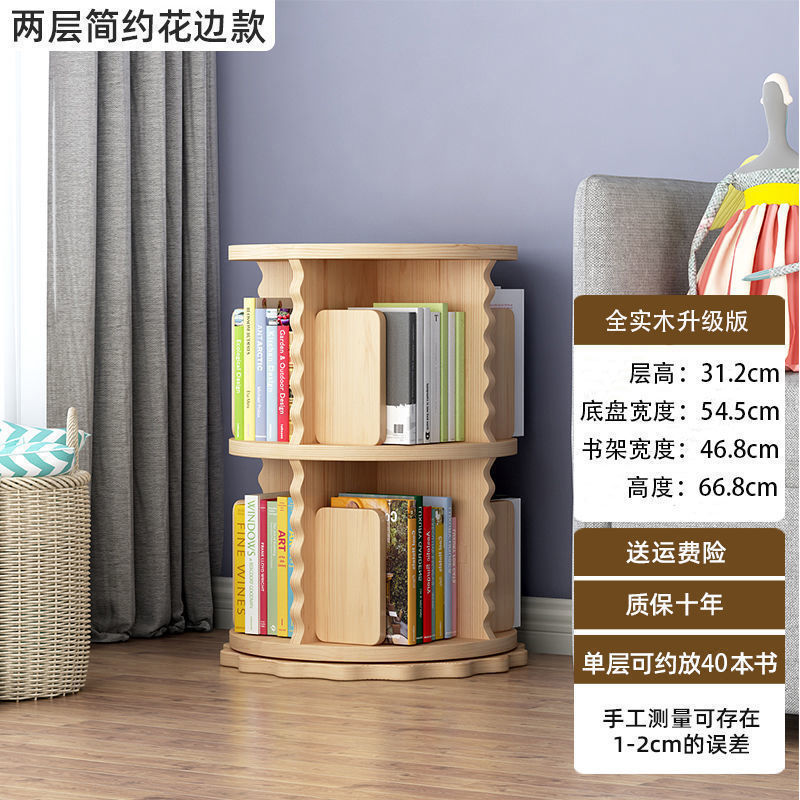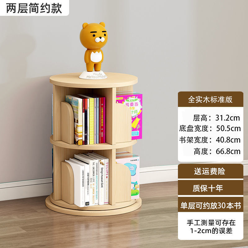 단단한 나무 회전 책장 바닥에 싸서 간단한 가정용 어린이 그림책 선반 학생 침실 360도 작은 책장
