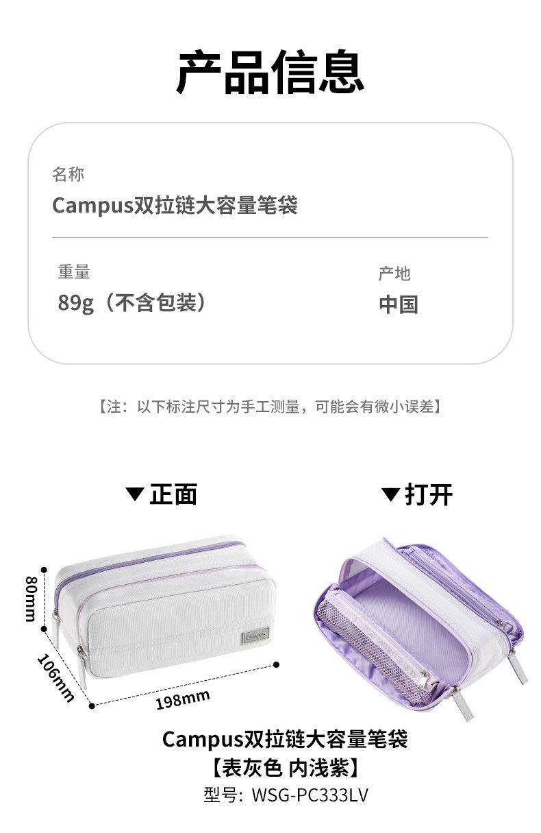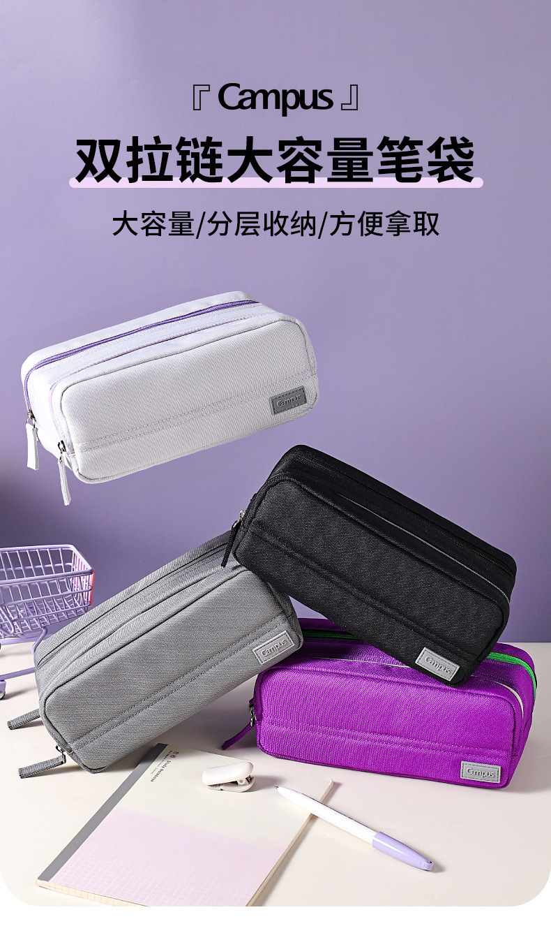 신제품 KOKUYO 캠퍼스 더블 지퍼 대용량 연필 가방 학생용 휴대용 필통 및 칸막이 문구 보관함스토어 가기