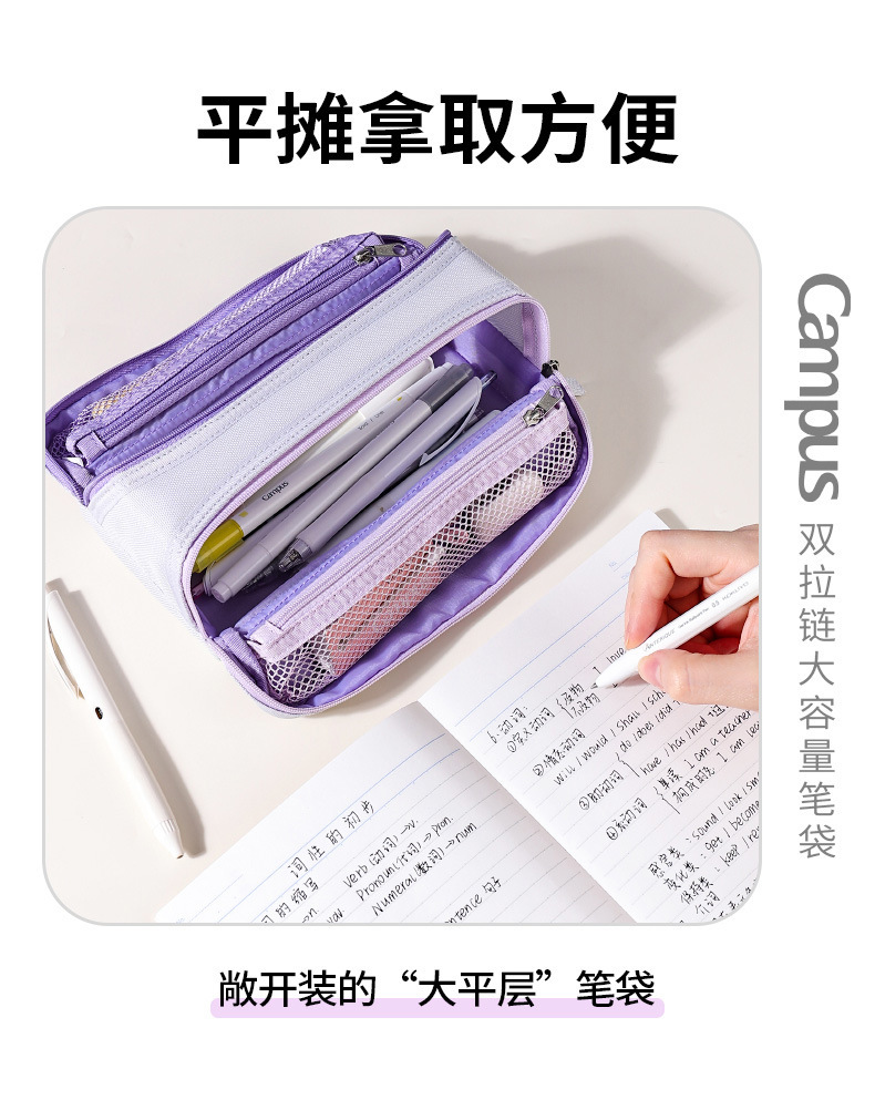 신제품 KOKUYO 캠퍼스 더블 지퍼 대용량 연필 가방 학생용 휴대용 필통 및 칸막이 문구 보관함