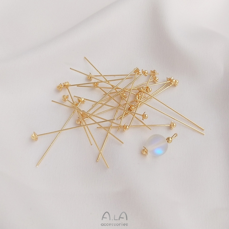 전기 도금 작은 꽃 둥근 머리 바늘 14K 금도금 꽃 모양의 구슬 바늘 0.6x30mmT 바늘 수제 구슬 diy 쥬얼리 액세서리