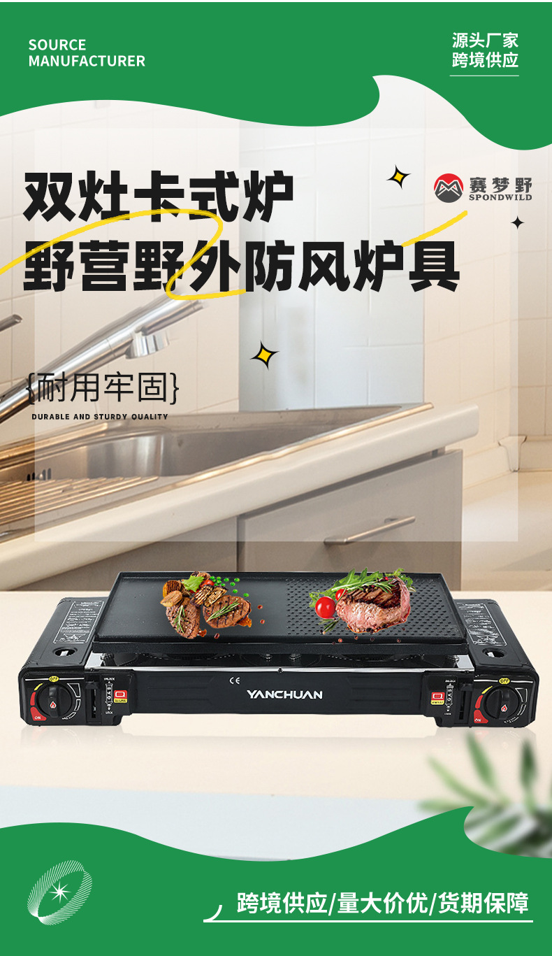 야외 더블 스토브 카세트 스토브 휴대용 카드 스토브 야외 방풍 스토브 캠핑 바베큐 가스 더블 헤드 가스 스토브