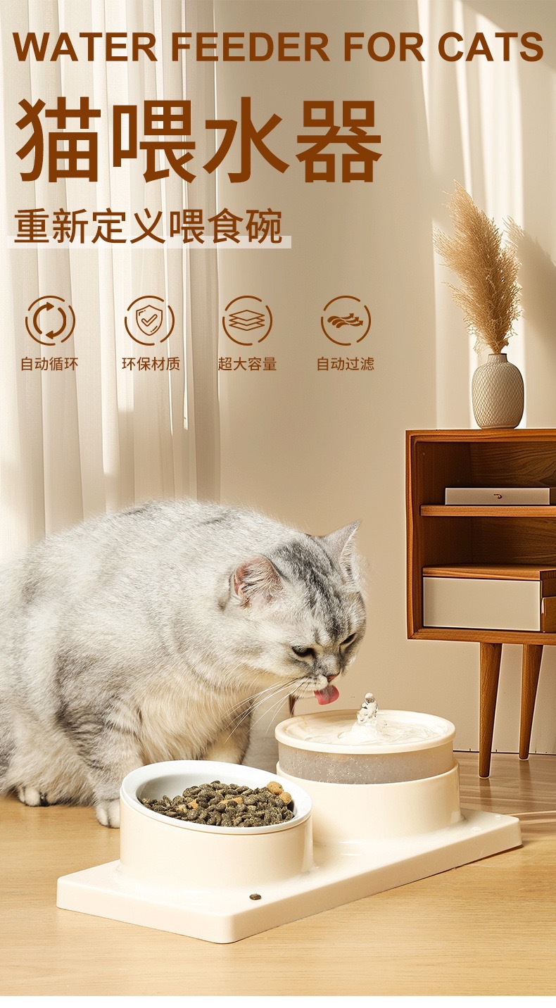 모조 세라믹 물과 사료 일체형 고양이 그릇, 이중 그릇, 개 그릇, 목 보호대, 고양이 사료 그릇, 식수 그릇, 뒤집힘 방지 애완 동물 용품 공장스토어 가기