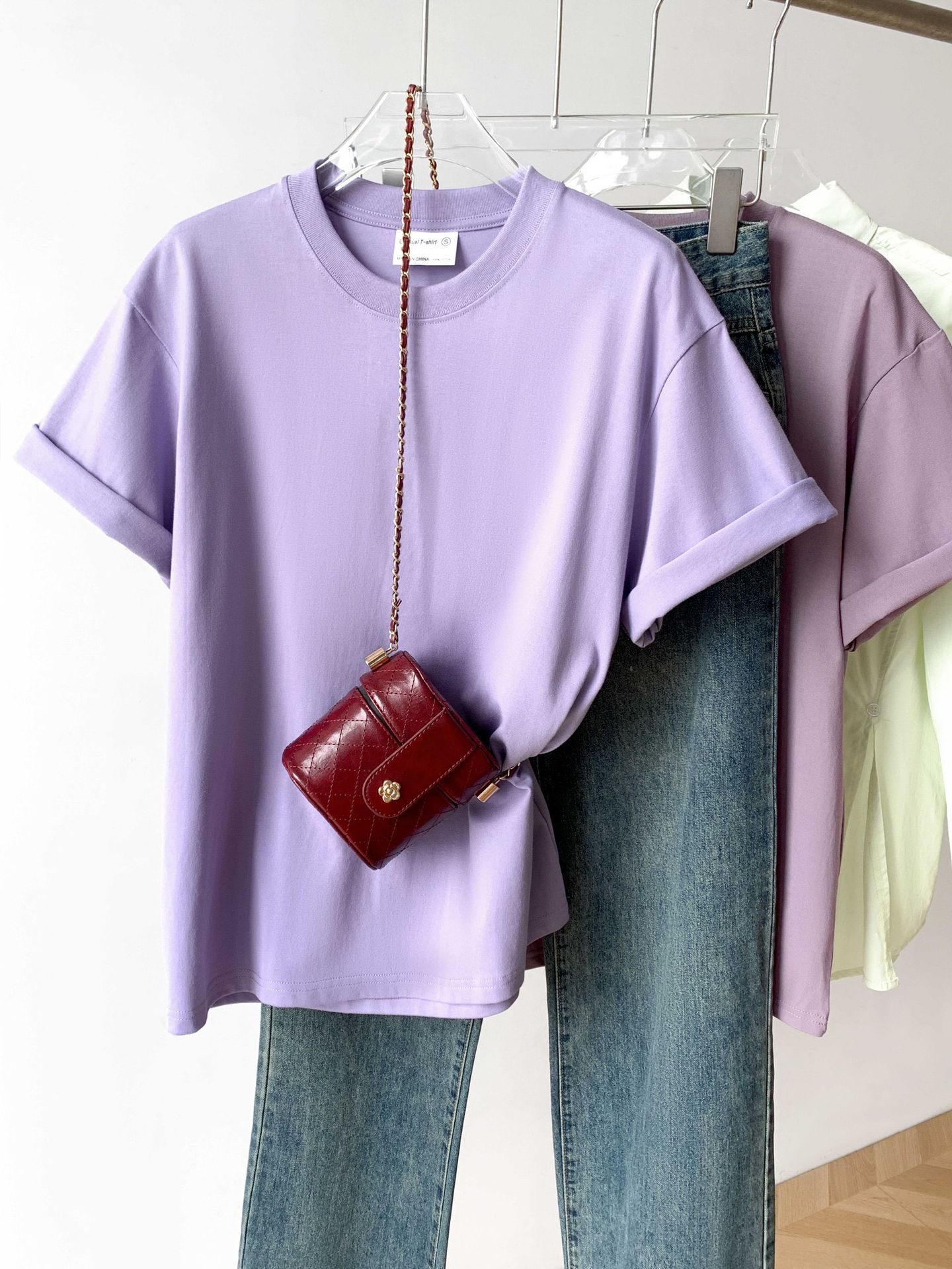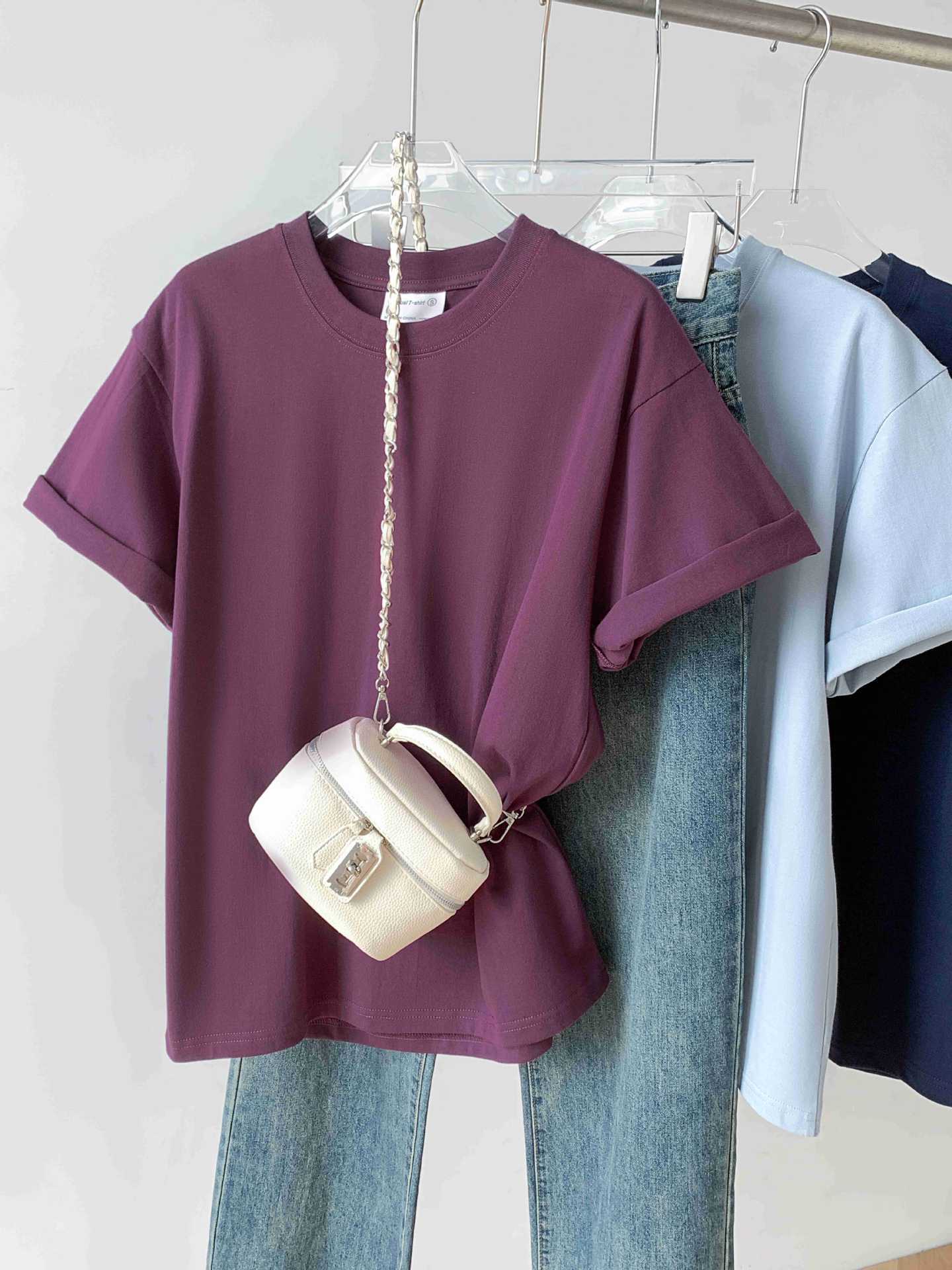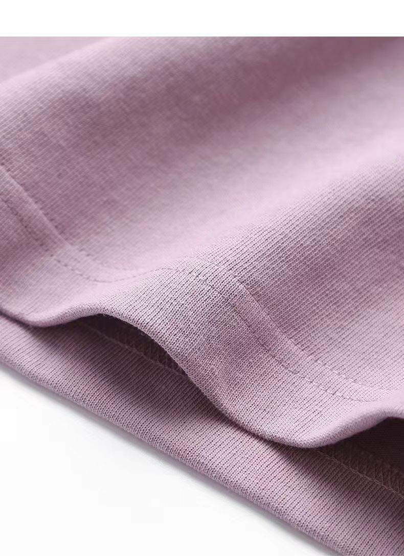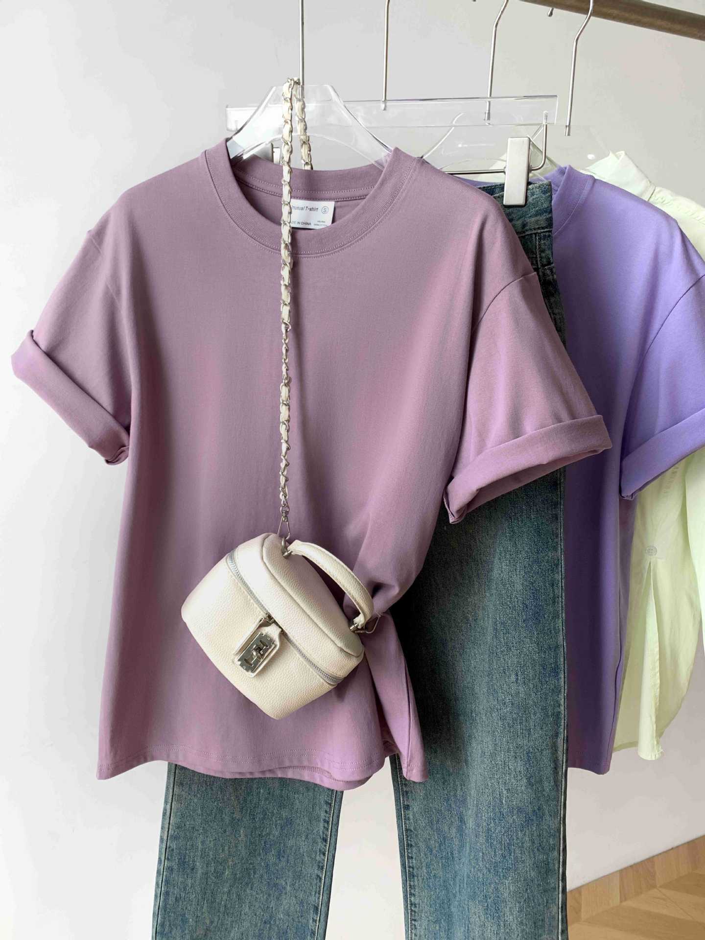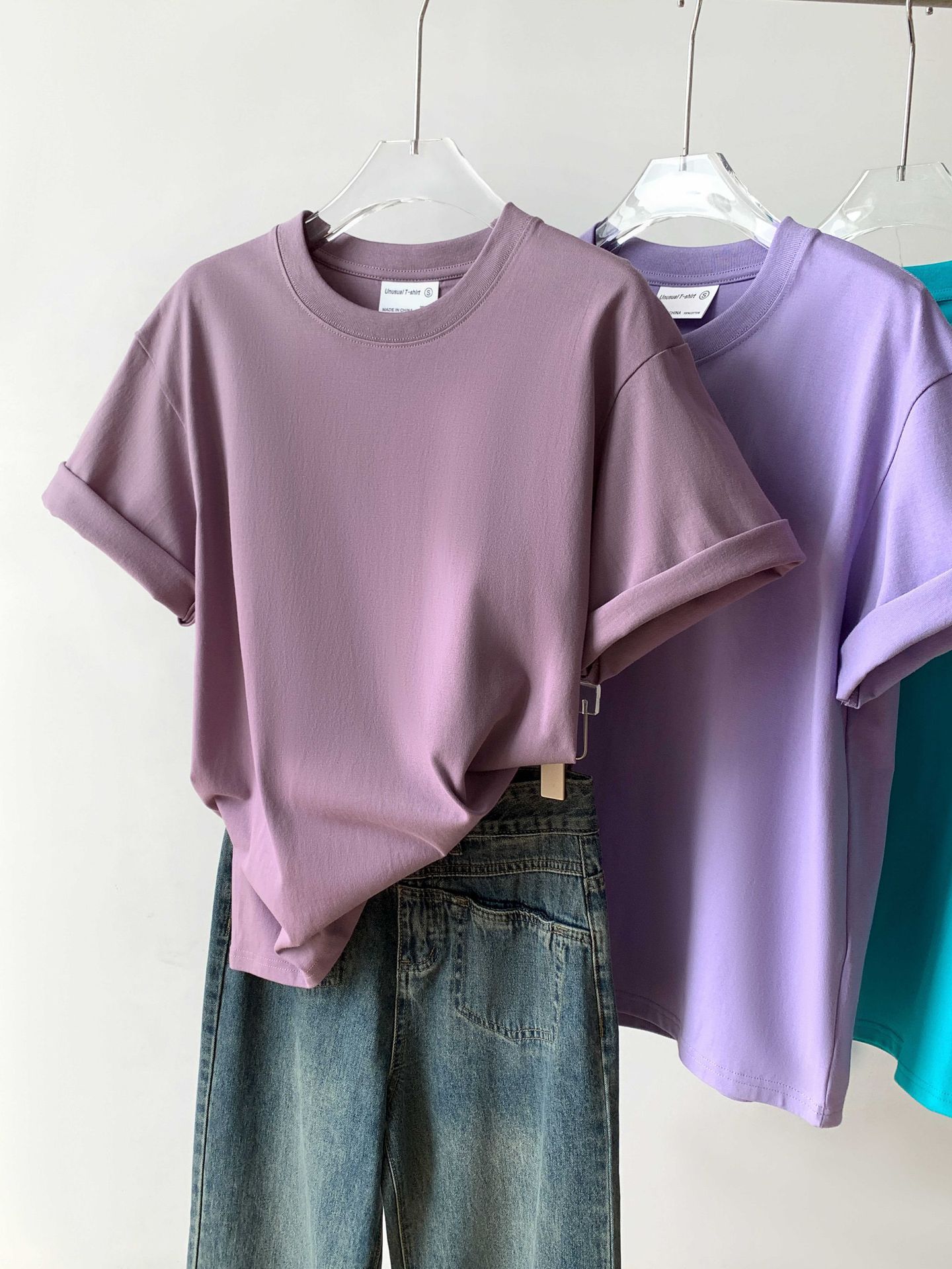 타로 퍼플 신장 면 헤비급 300g 순백색 불투명 반팔 티셔츠 남성용 루즈 캐주얼 바닥 셔츠 탑 여성용 여름