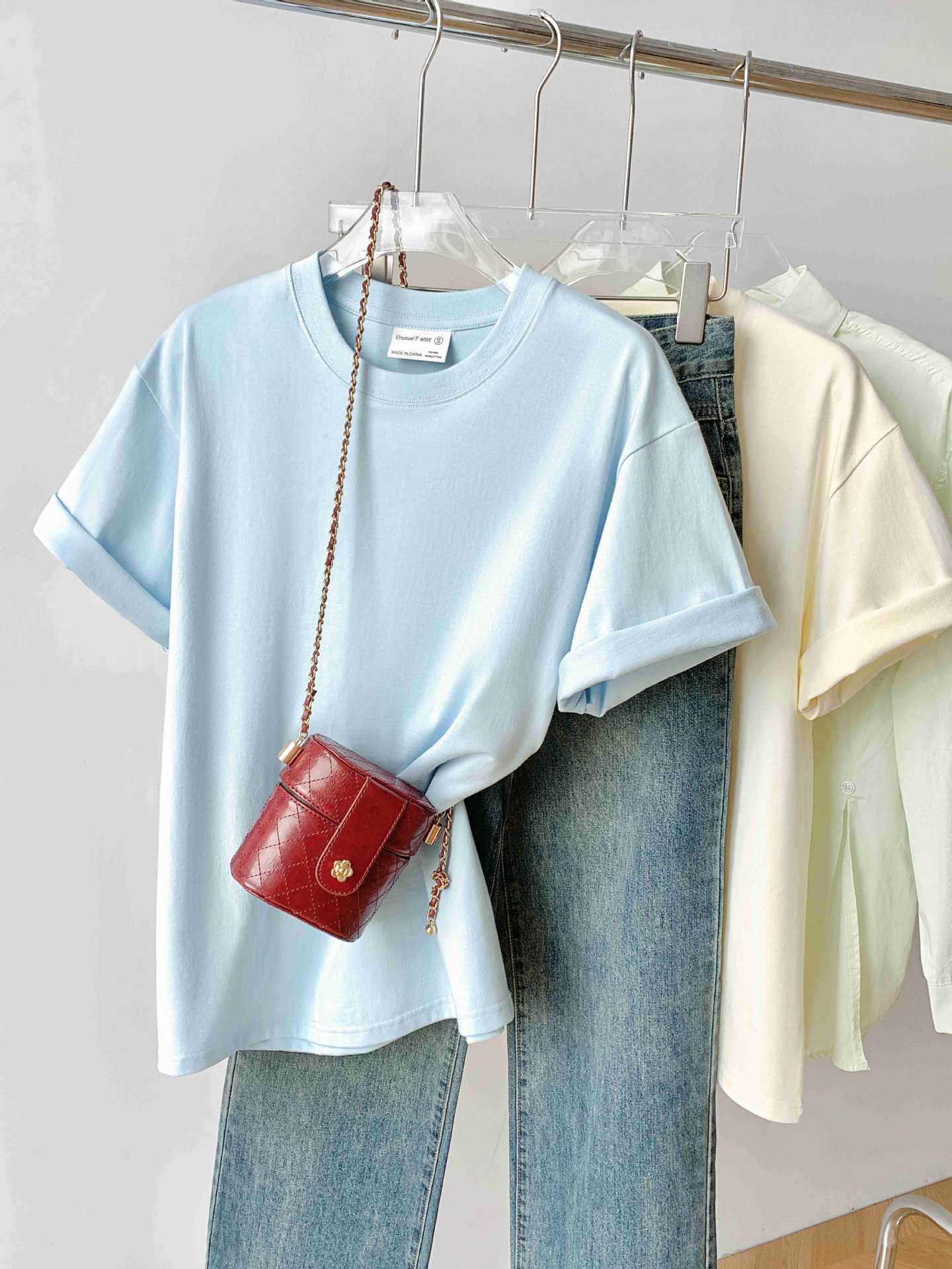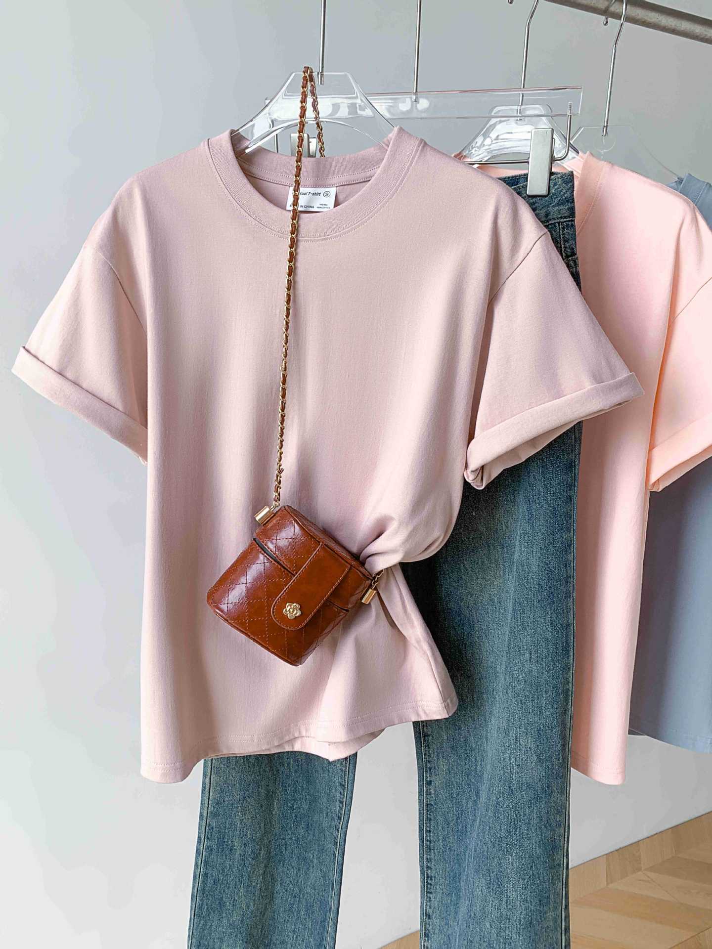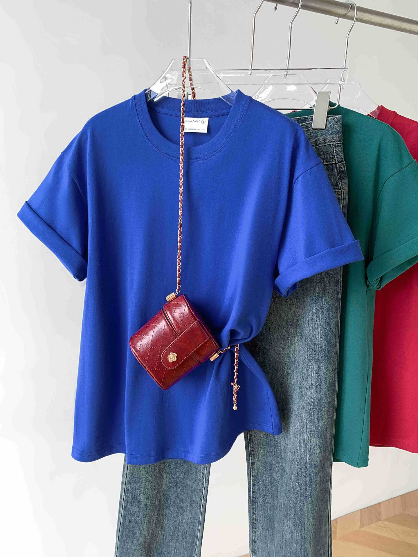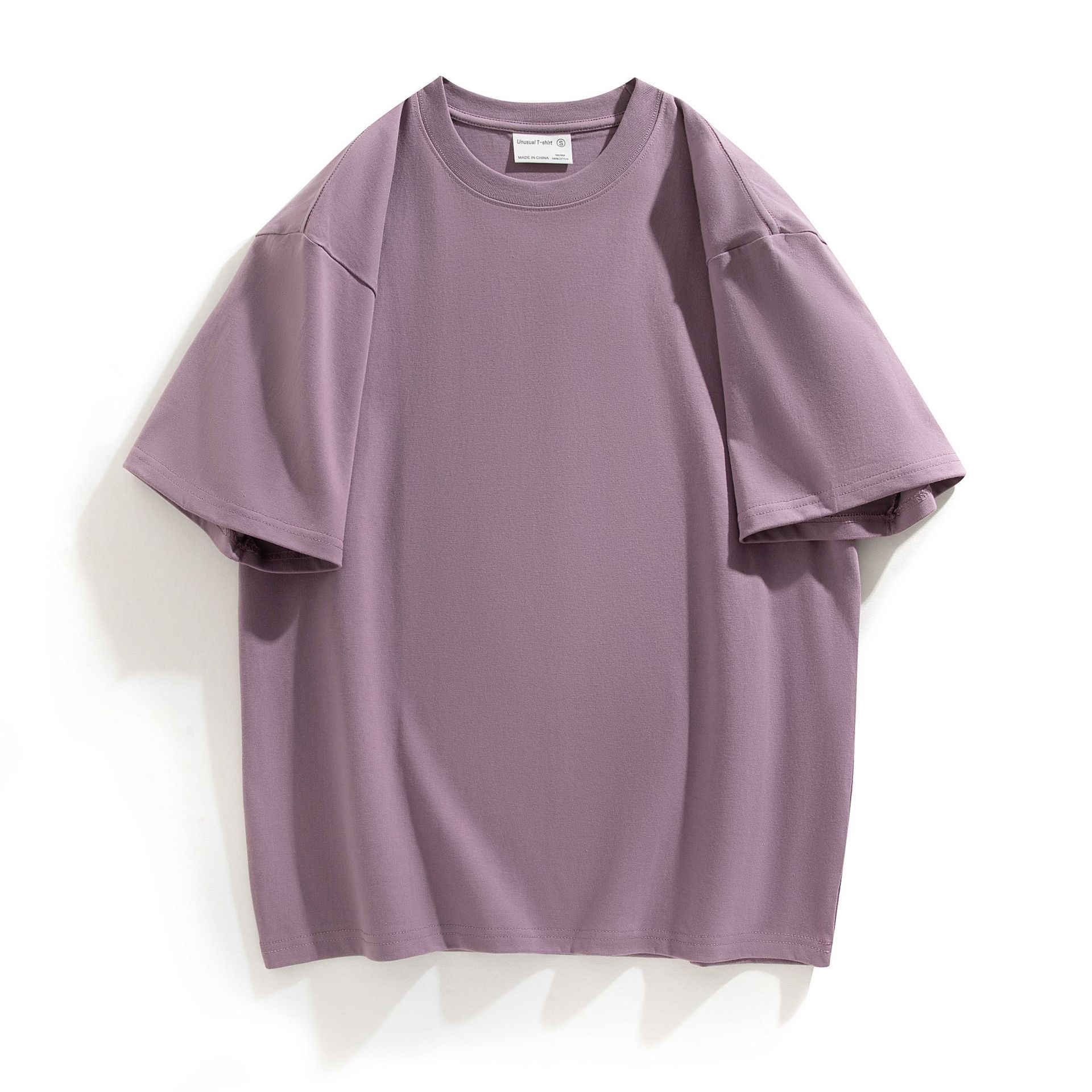 타로 퍼플 신장 면 헤비급 300g 순백색 불투명 반팔 티셔츠 남성용 루즈 캐주얼 바닥 셔츠 탑 여성용 여름스토어 가기