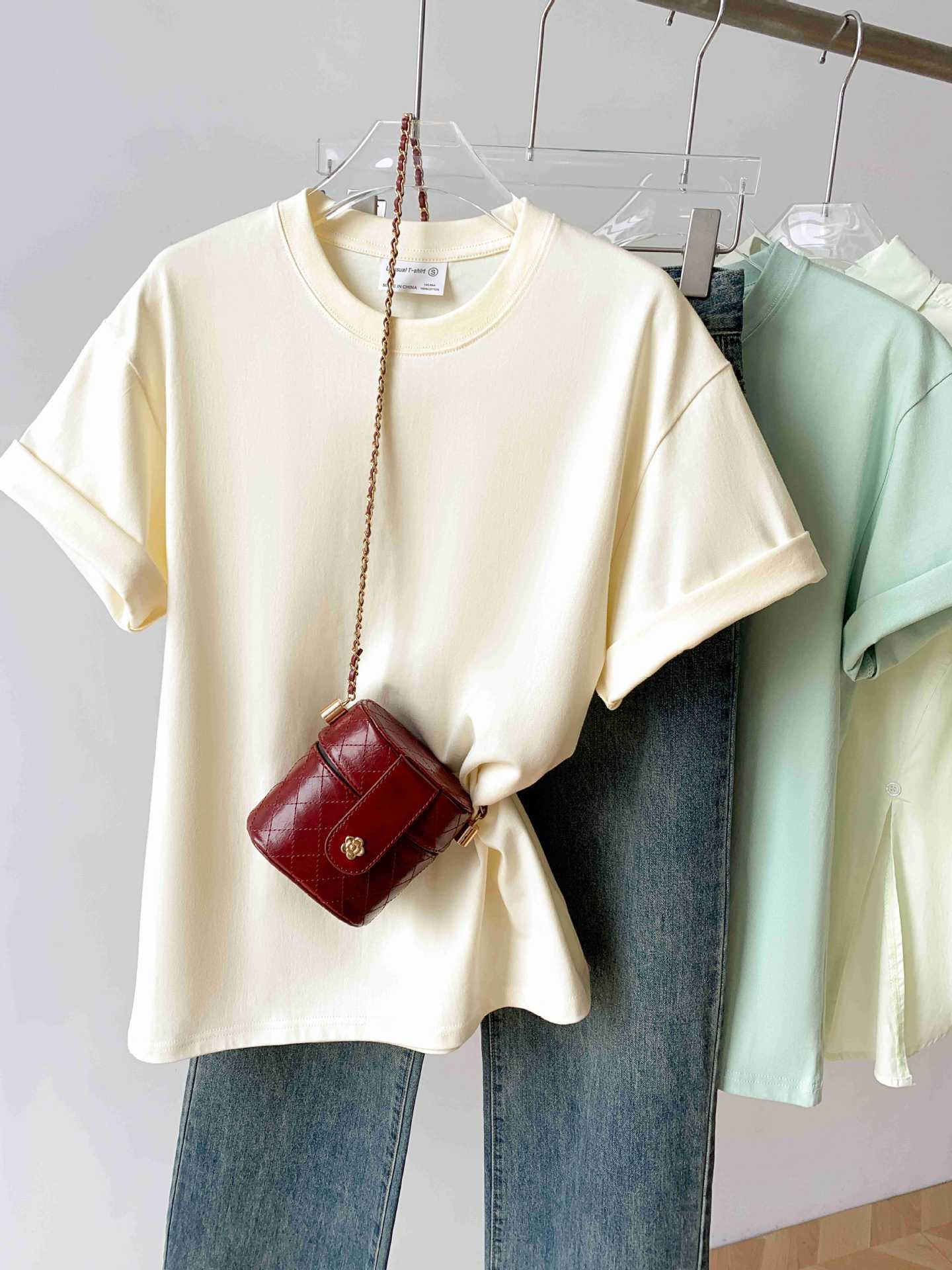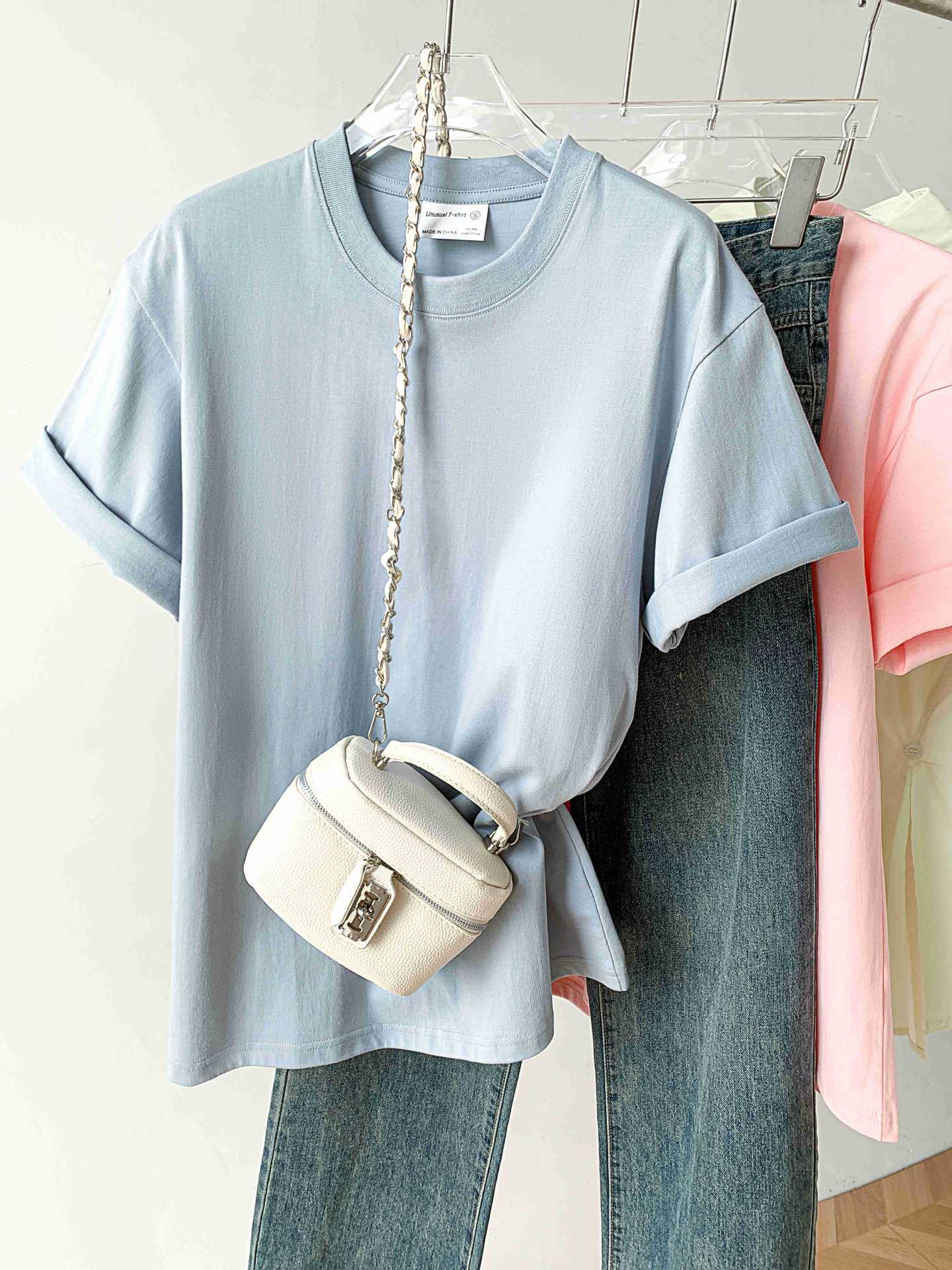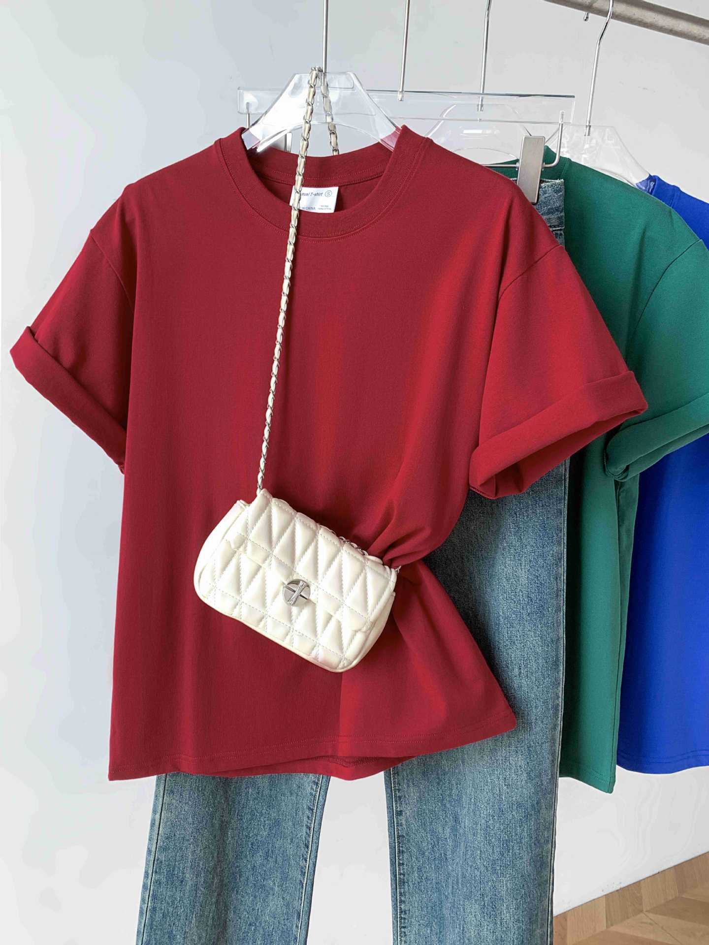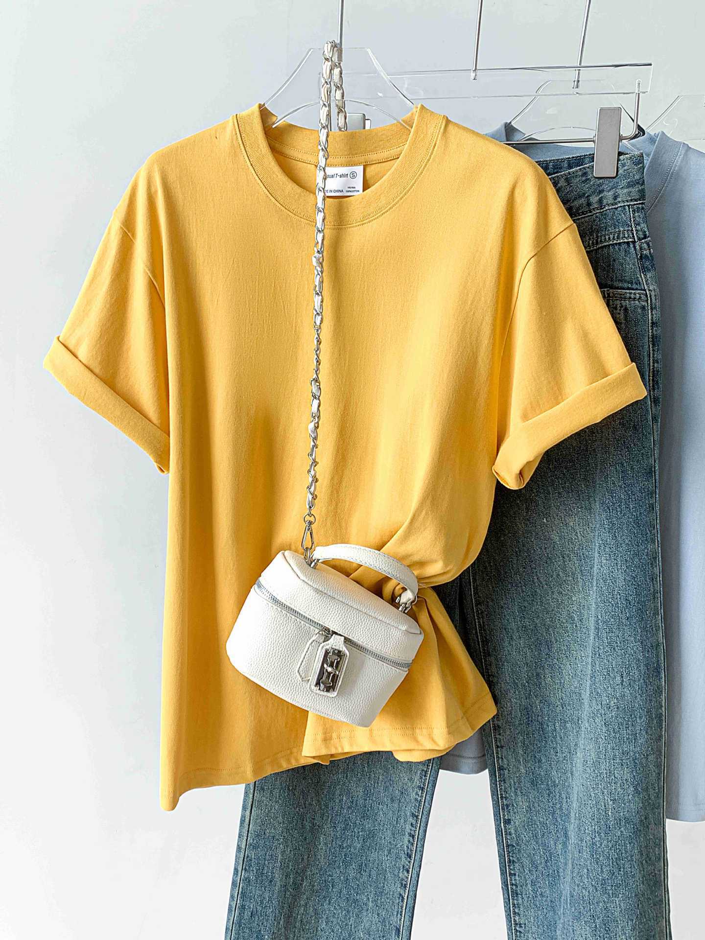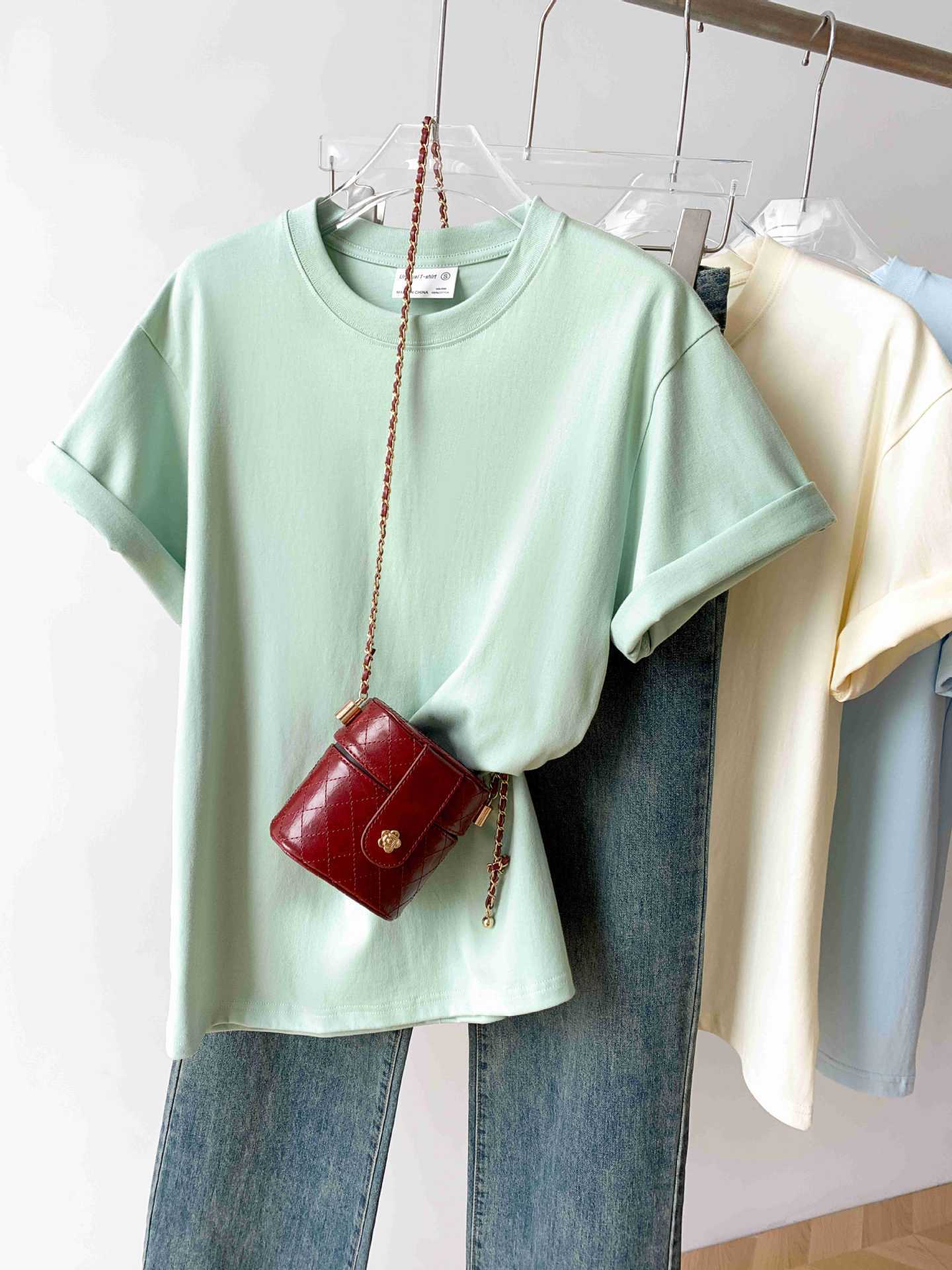 타로 퍼플 신장 면 헤비급 300g 순백색 불투명 반팔 티셔츠 남성용 루즈 캐주얼 바닥 셔츠 탑 여성용 여름스토어 가기