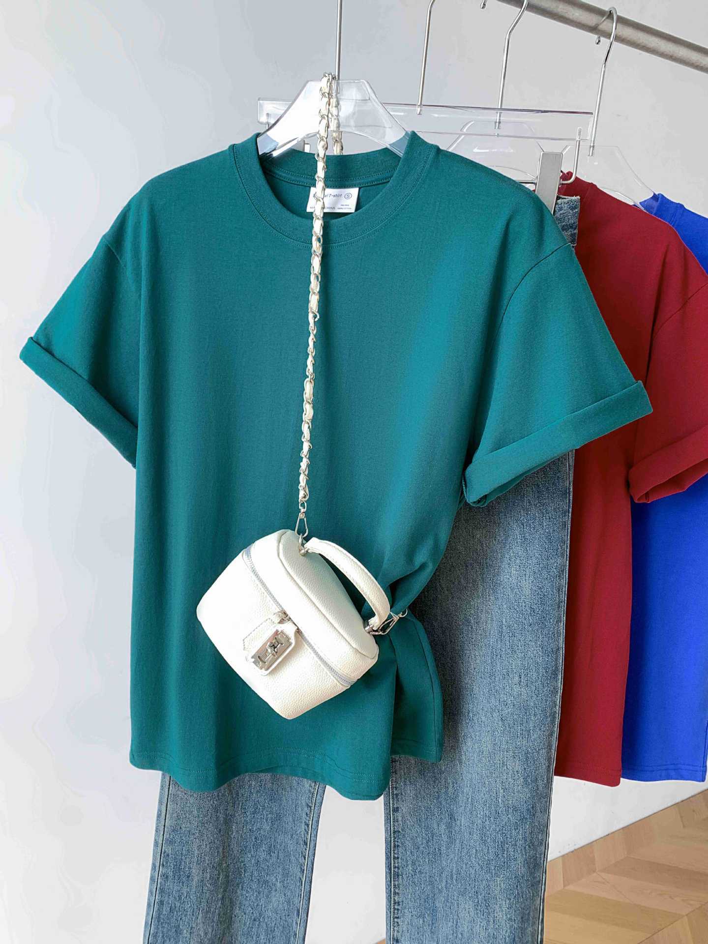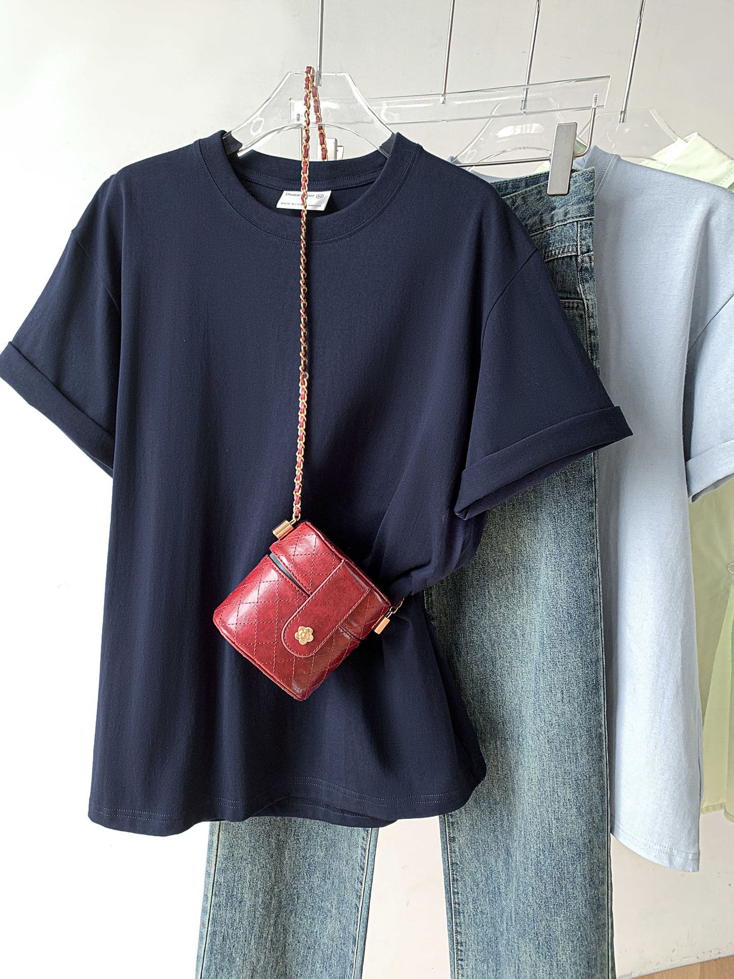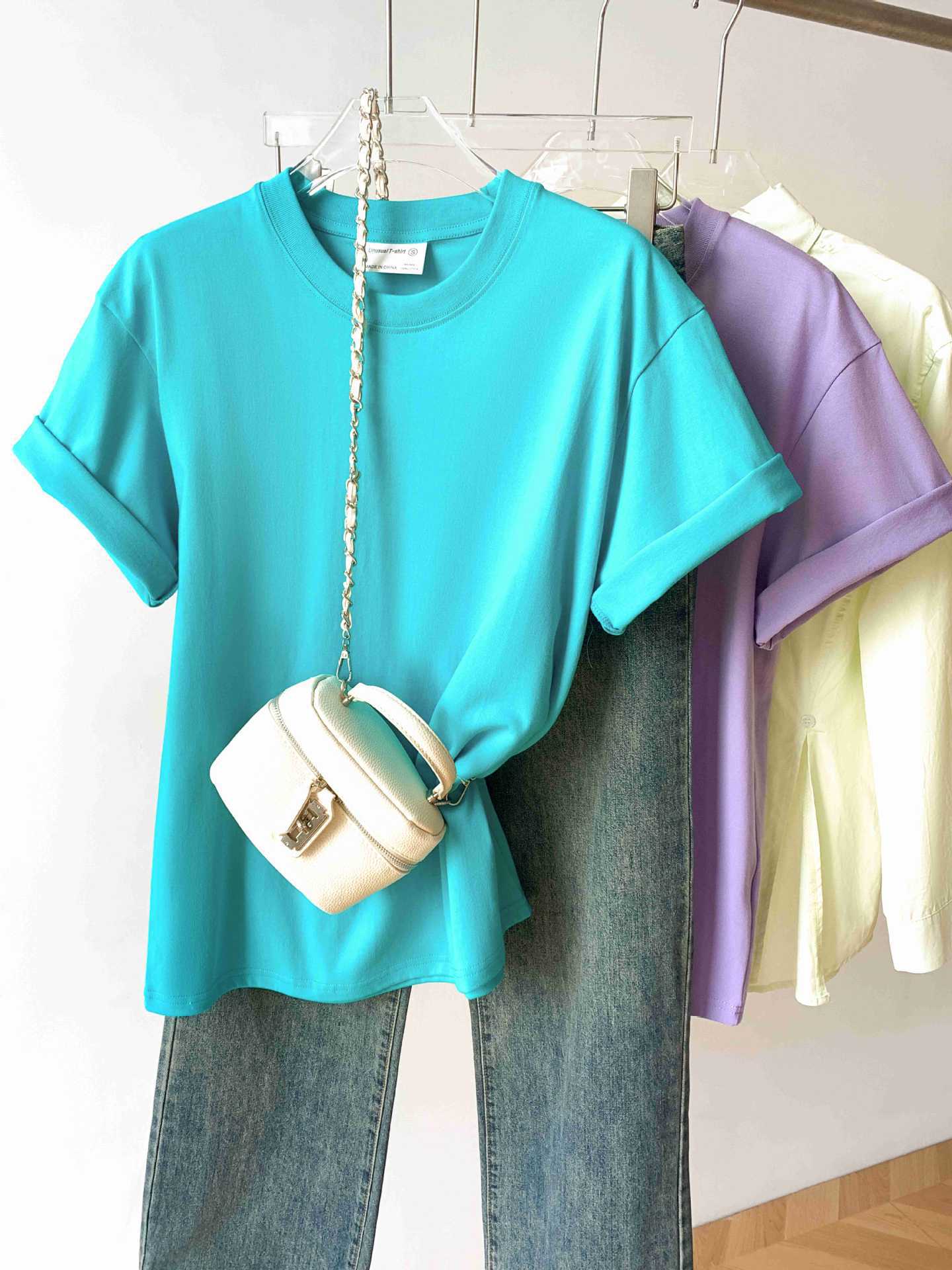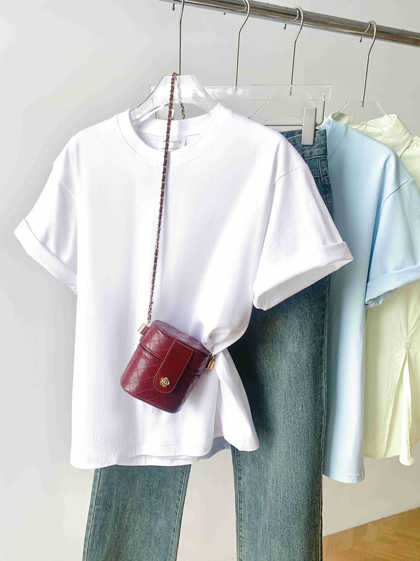 타로 퍼플 신장 면 헤비급 300g 순백색 불투명 반팔 티셔츠 남성용 루즈 캐주얼 바닥 셔츠 탑 여성용 여름스토어 가기