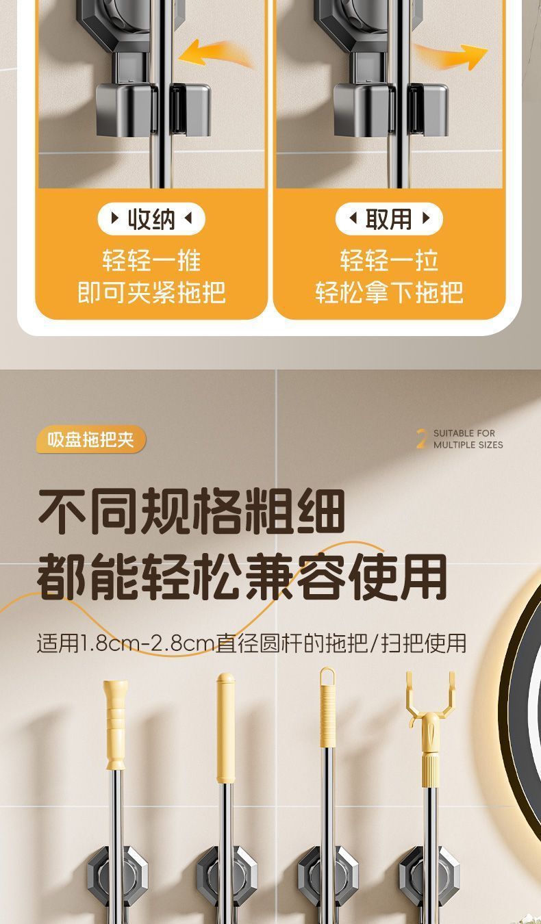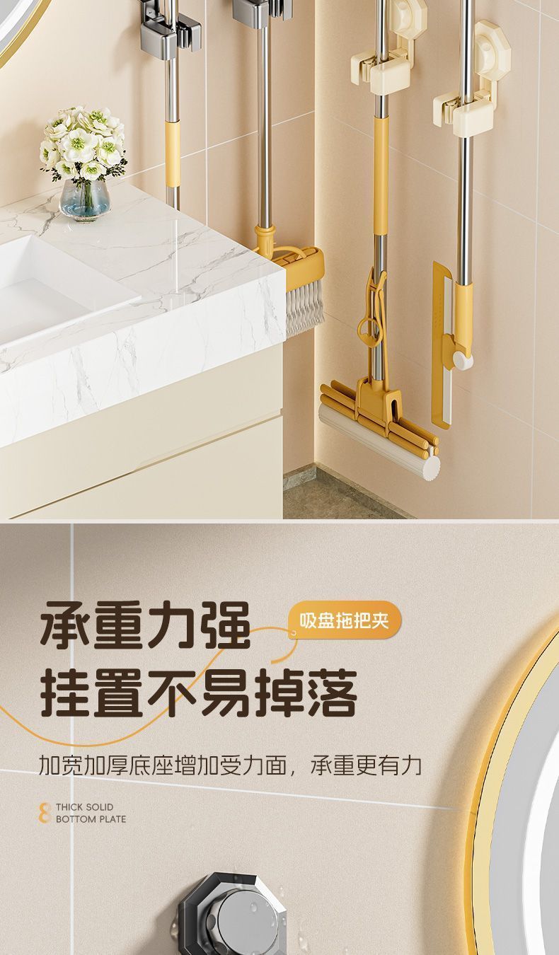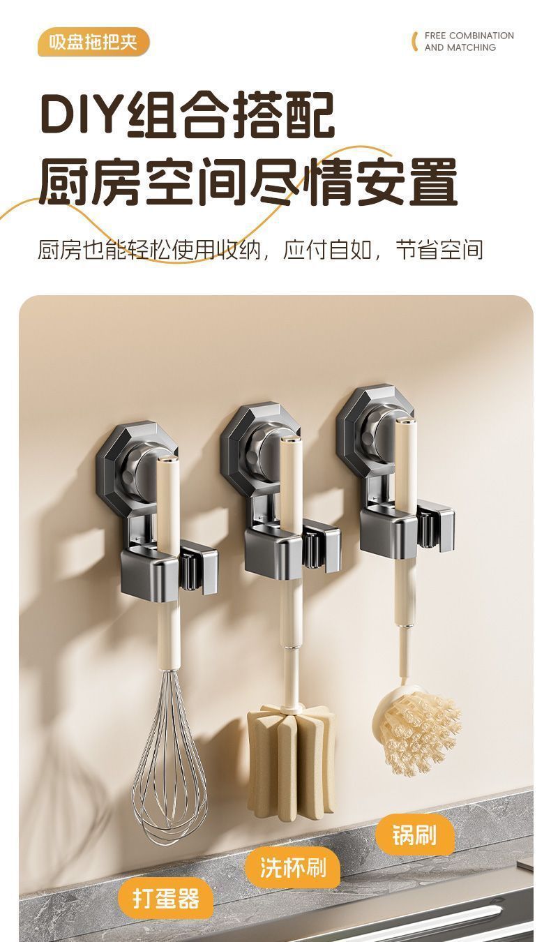 공장에서 펀치 없는 흡입컵 걸레 클립, 벽걸이 걸레 걸이, 주방 및 욕실용 빗자루 걸이, 욕실용을 공급합니다.스토어 가기