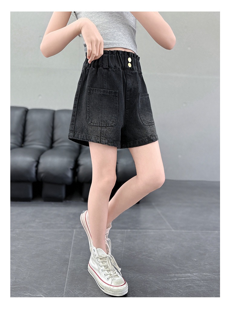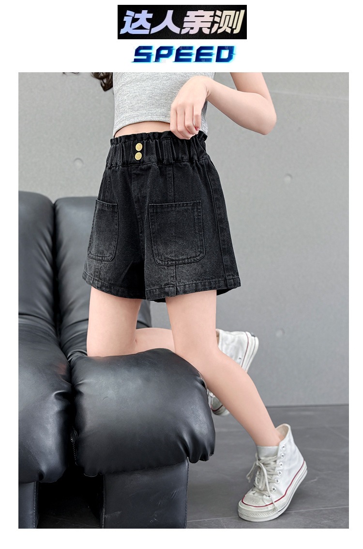 여아 데님 반바지 여름 2025 새로운 스타일 중대형 아동 여름 의류 캐주얼 핫팬츠 앞 포켓 청바지