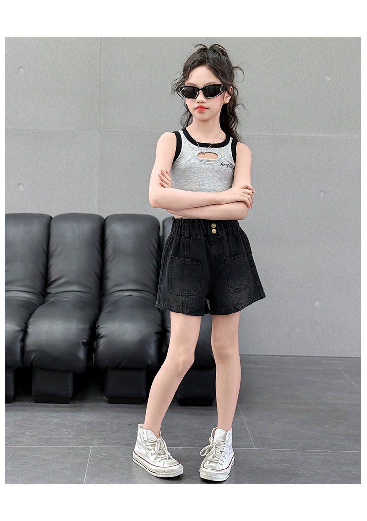 여아 데님 반바지 여름 2025 새로운 스타일 중대형 아동 여름 의류 캐주얼 핫팬츠 앞 포켓 청바지스토어 가기
