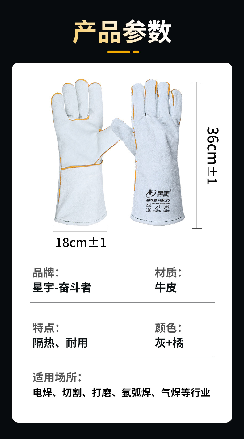 Xingyu 소가죽 용접 장갑, 화상 방지, 고온 방지, 단열, 비말 방지, 펑크 방지, 용접공 용접 특수 장갑