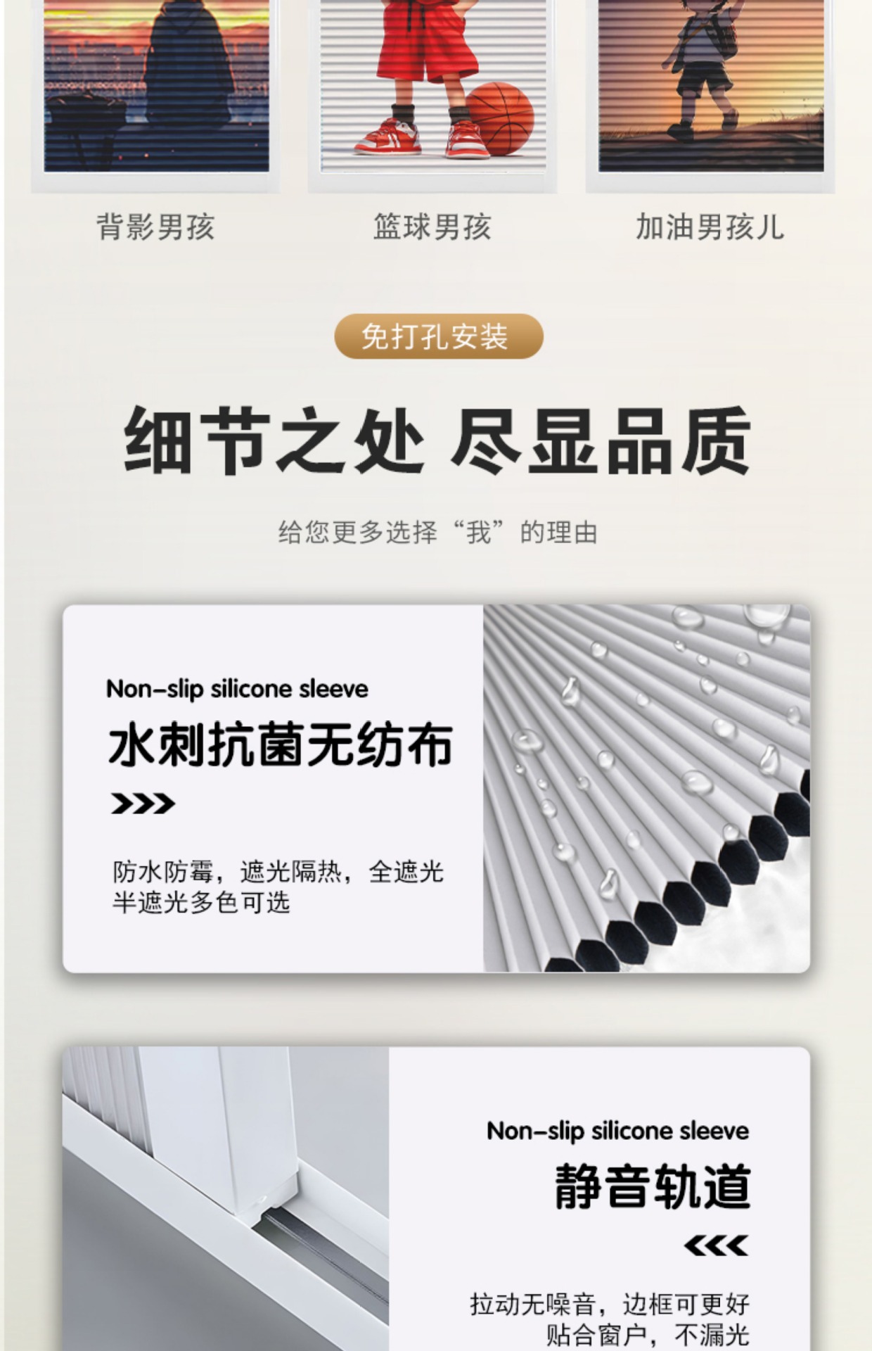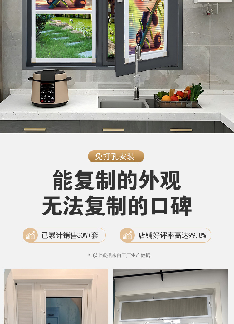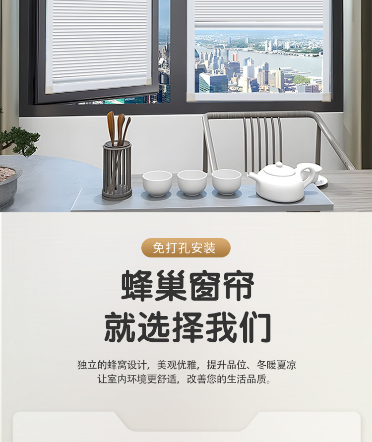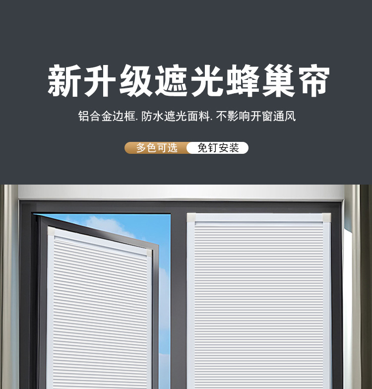 베이비 블라인드, 펀치 없는 내장형 완전 차광 벌집 커튼, 욕실 및 주방 내부 창문용 특수 차양