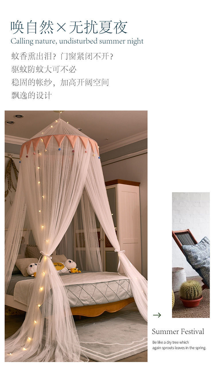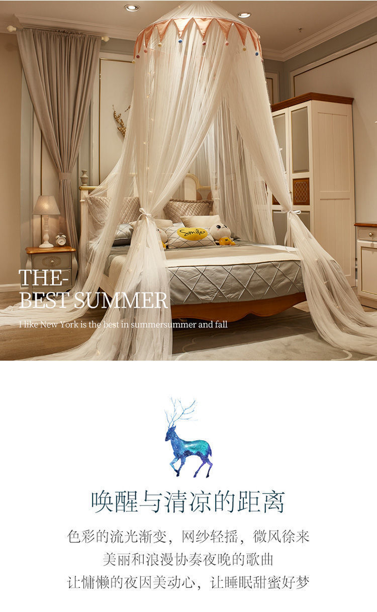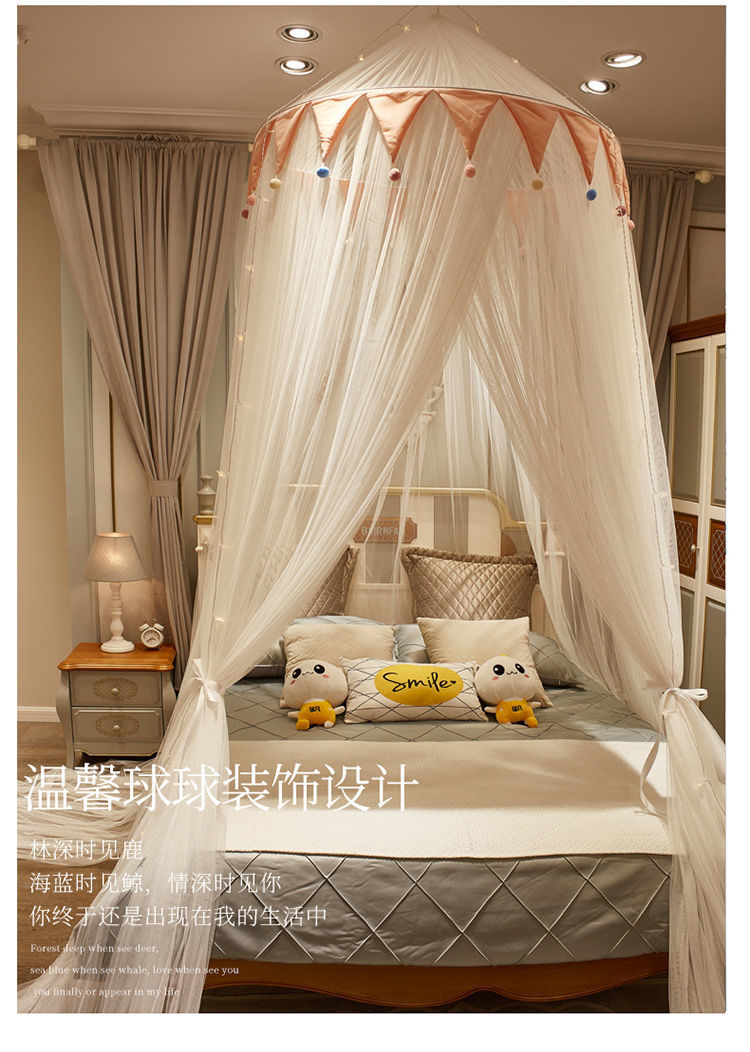 공주 스타일 모기장 설치가 필요없는 천장 걸이 이중 거즈 가정용 바닥 돔 침대 커튼 1.2m 1.68m 침대스토어 가기
