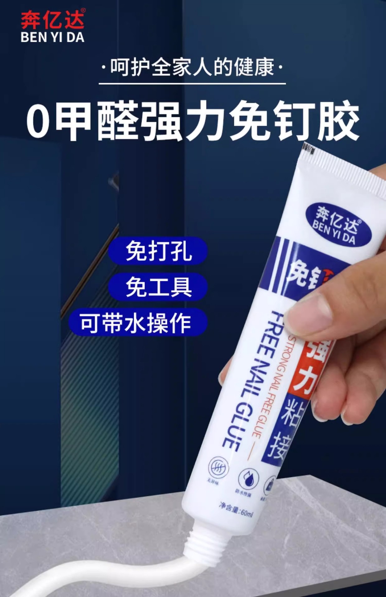 강력한 못없는 접착제 60mL 대용량 타일 후크 못 대체 접착제 다기능 벽 펀치없는 가정용 강력 접착제