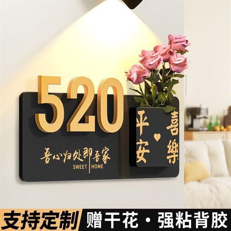 2025 주택 번호판 홈 크리 에이 티브 하이 엔드 입구 문 하이 엔드 센서 라이트 평화와 기쁨 아크릴스토어 가기