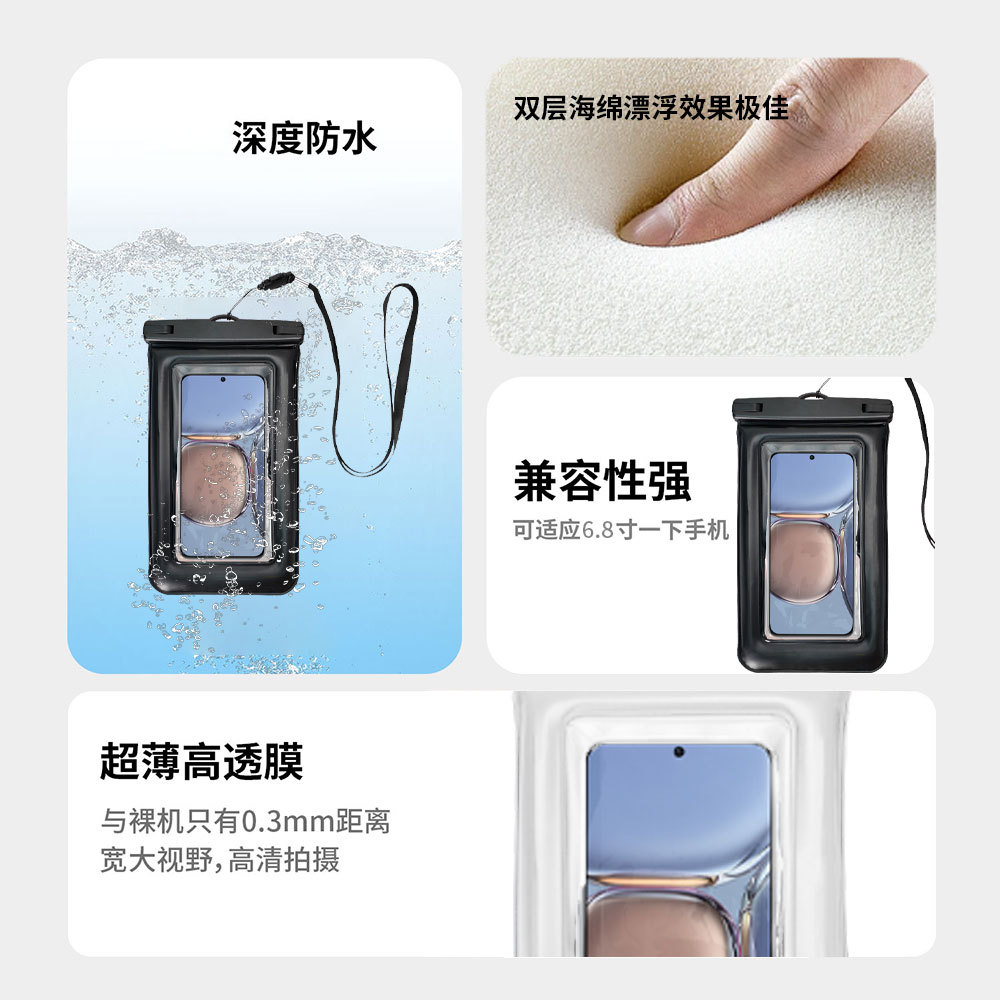 스펀지 플로팅 휴대폰 방수 가방, 투명도가 높고 터치 스크린, 수영, 다이빙, 강 래프팅, 야외 등산 및 하이킹
