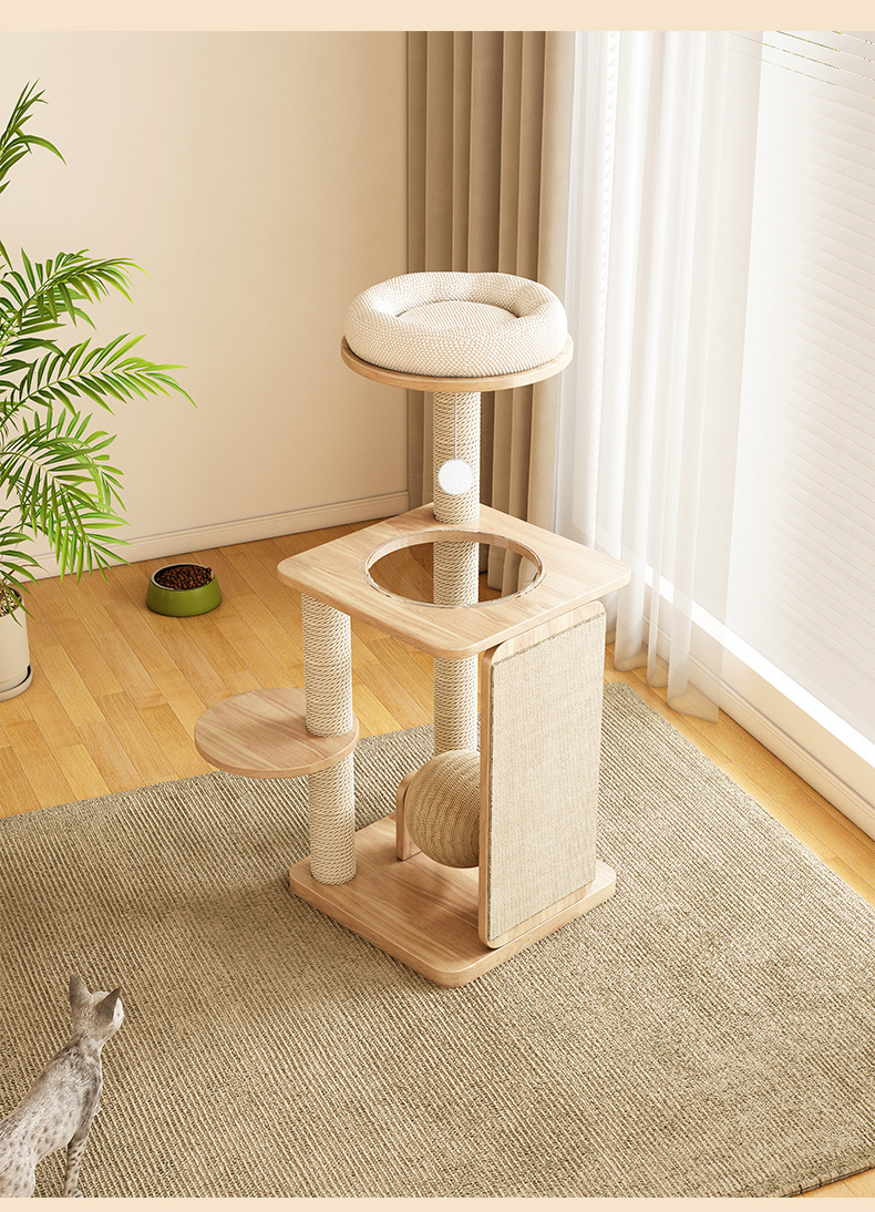 [맞춤형] 원목 고양이 클라이밍 프레임, 고양이 집 일체형, 공간 절약형, 고양이 클라이밍 랙, 고양이 스크래치 보드, 다기능 클라이밍