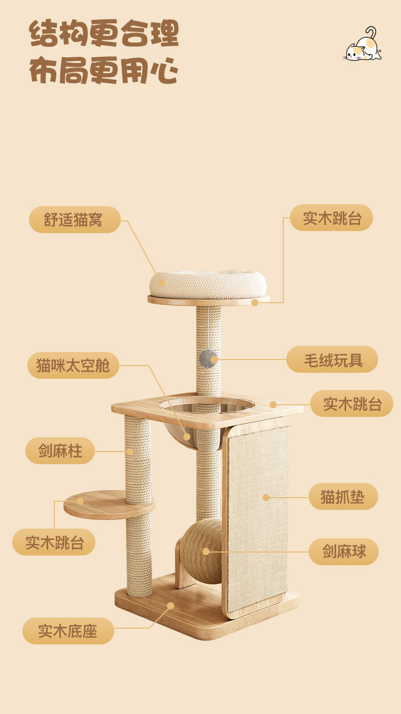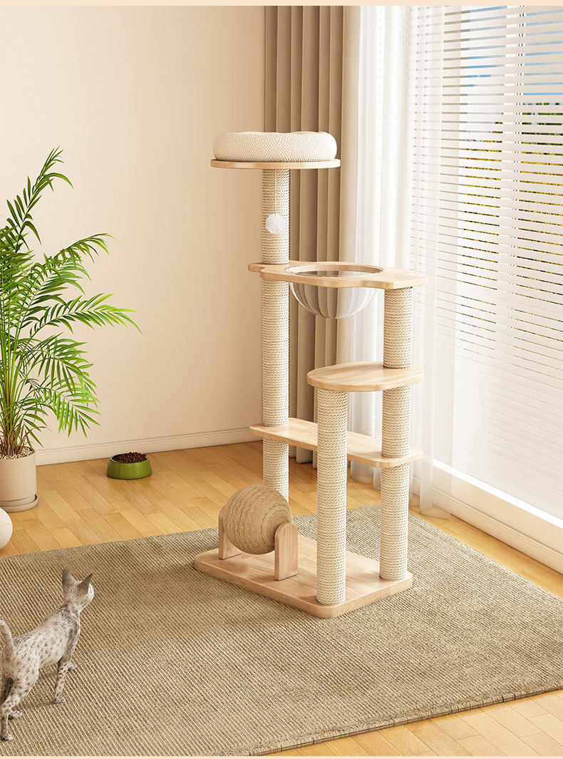 [맞춤형] 원목 고양이 클라이밍 프레임, 고양이 집 일체형, 공간 절약형, 고양이 클라이밍 랙, 고양이 스크래치 보드, 다기능 클라이밍스토어 가기