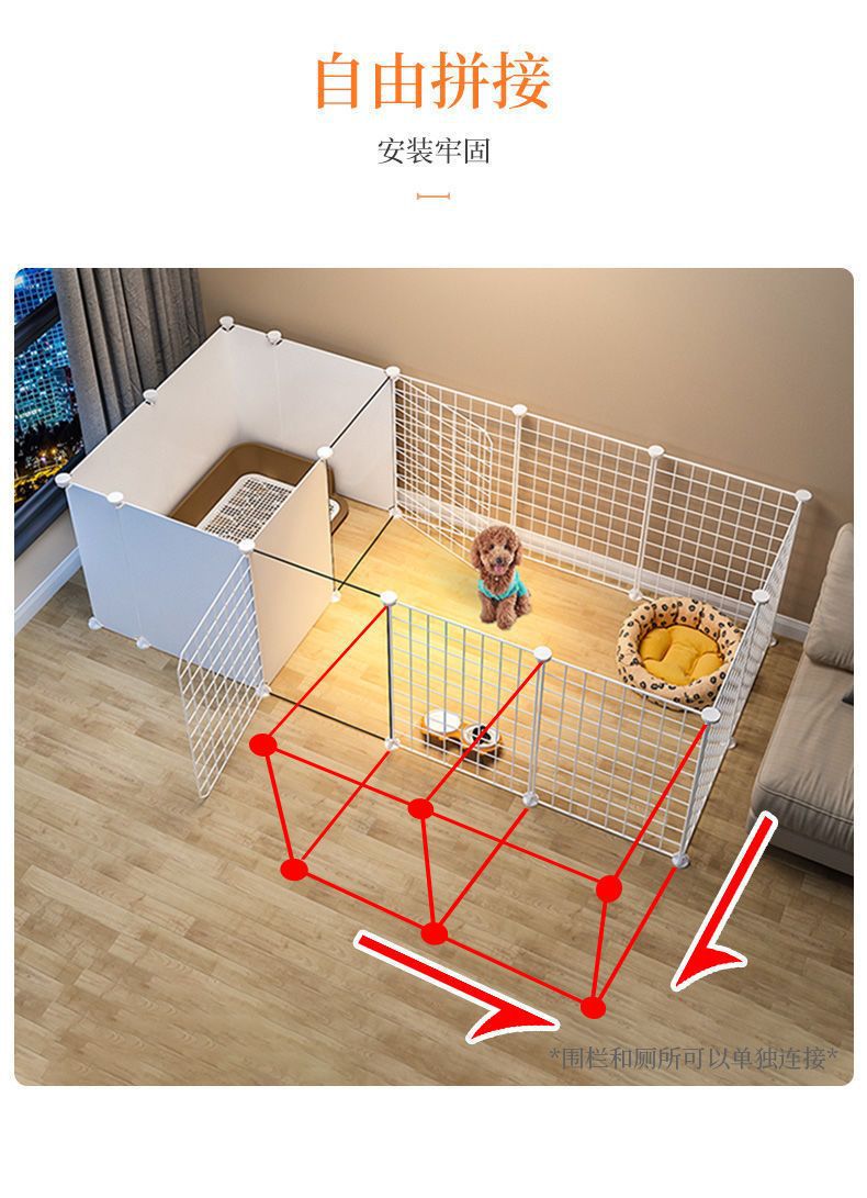애완동물 울타리, 개 격리, 무료 조합, 화장실 공간이 있는 실내 소형 개집, 가정용 울타리 개 케이지스토어 가기