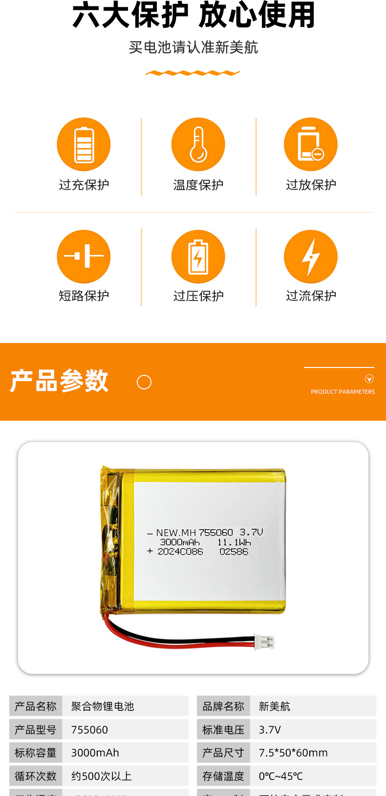 755060 폴리머 3000mAh 장난감 의료 기기 난방 장갑 난방 양말 리튬 배터리