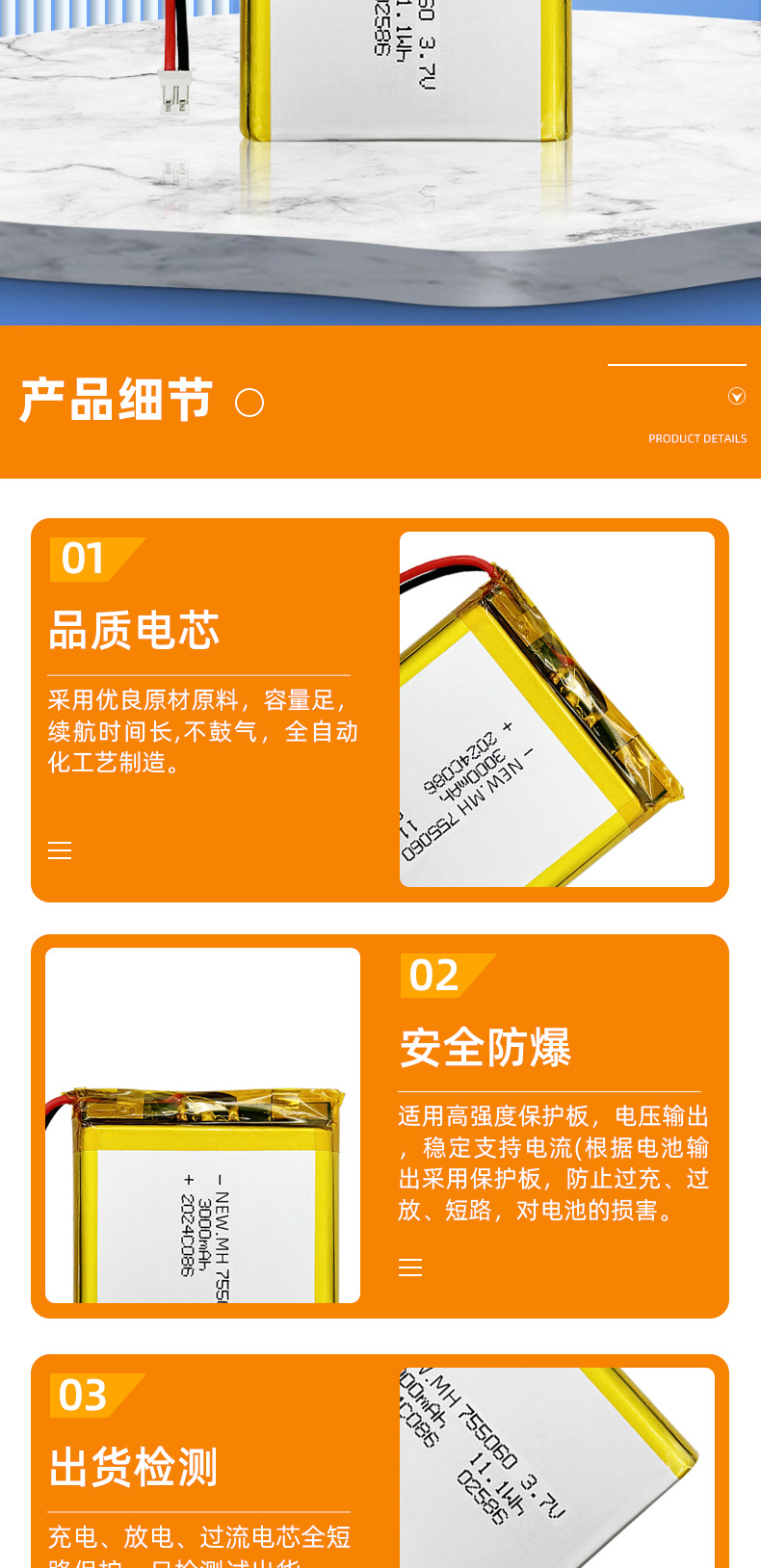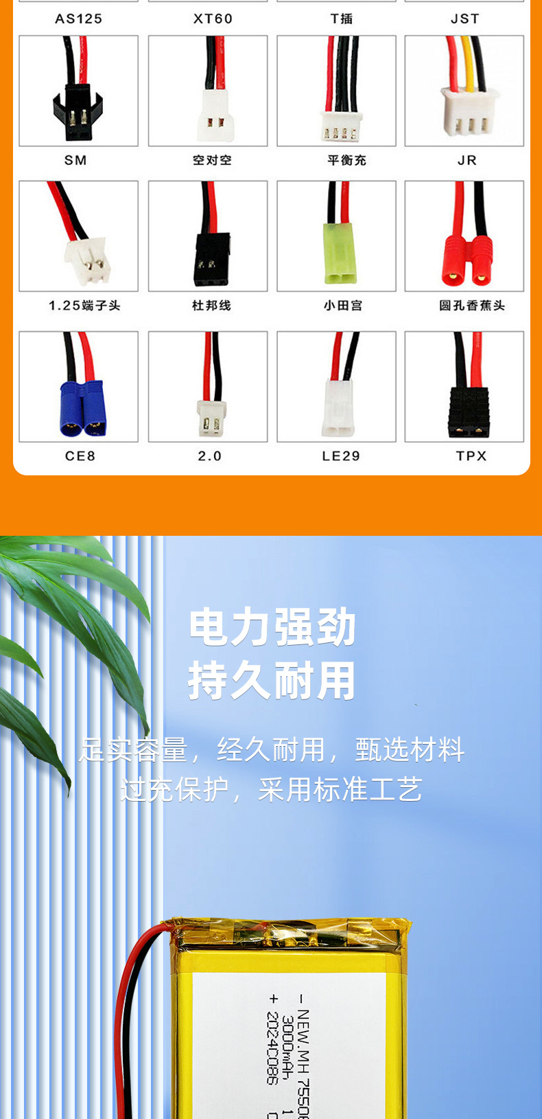 • 755060-3000mAh 플러스 보드(케이블 포함)