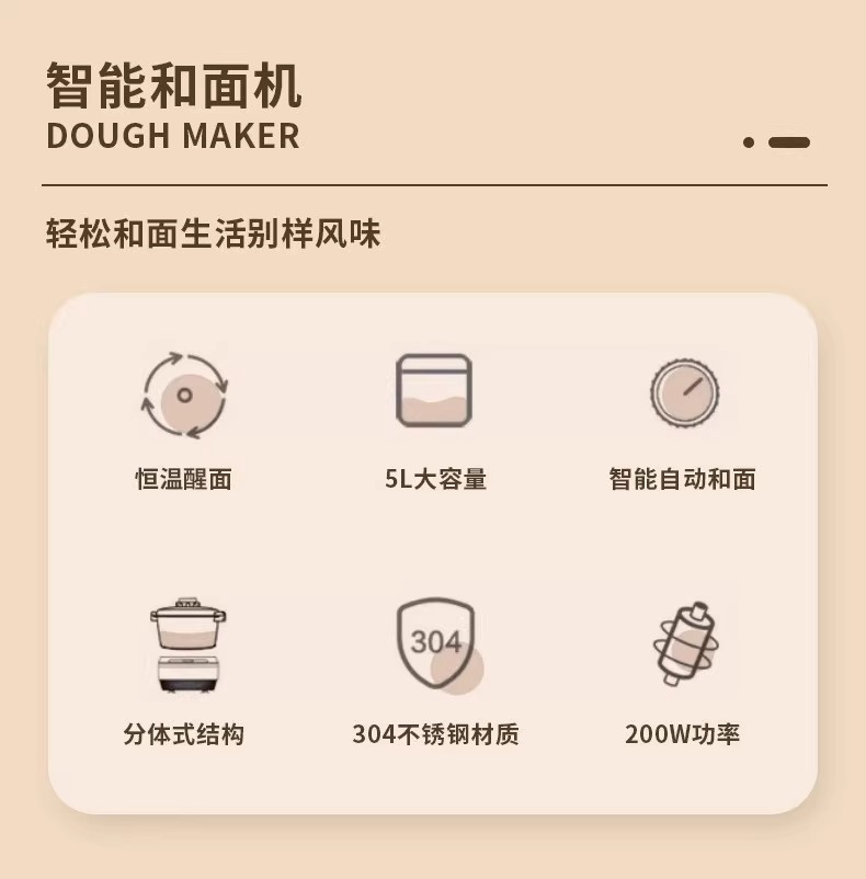 • 5L 고출력 스마트 반죽기 (반죽 + 발효 + 항온 발효) ♜ ✓