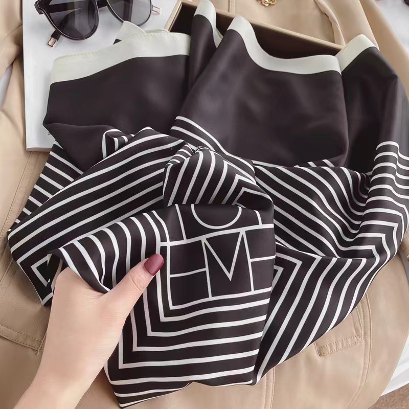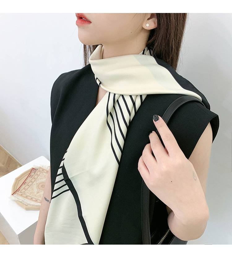 한국 주문 허리 스카프 90x90 여성용 스퀘어 스카프 봄 한국 스타일 흑백 줄무늬 스카프 헤어 액세서리 머리 스카프