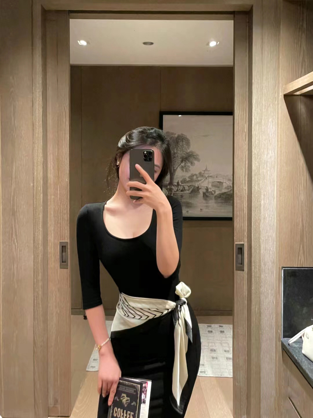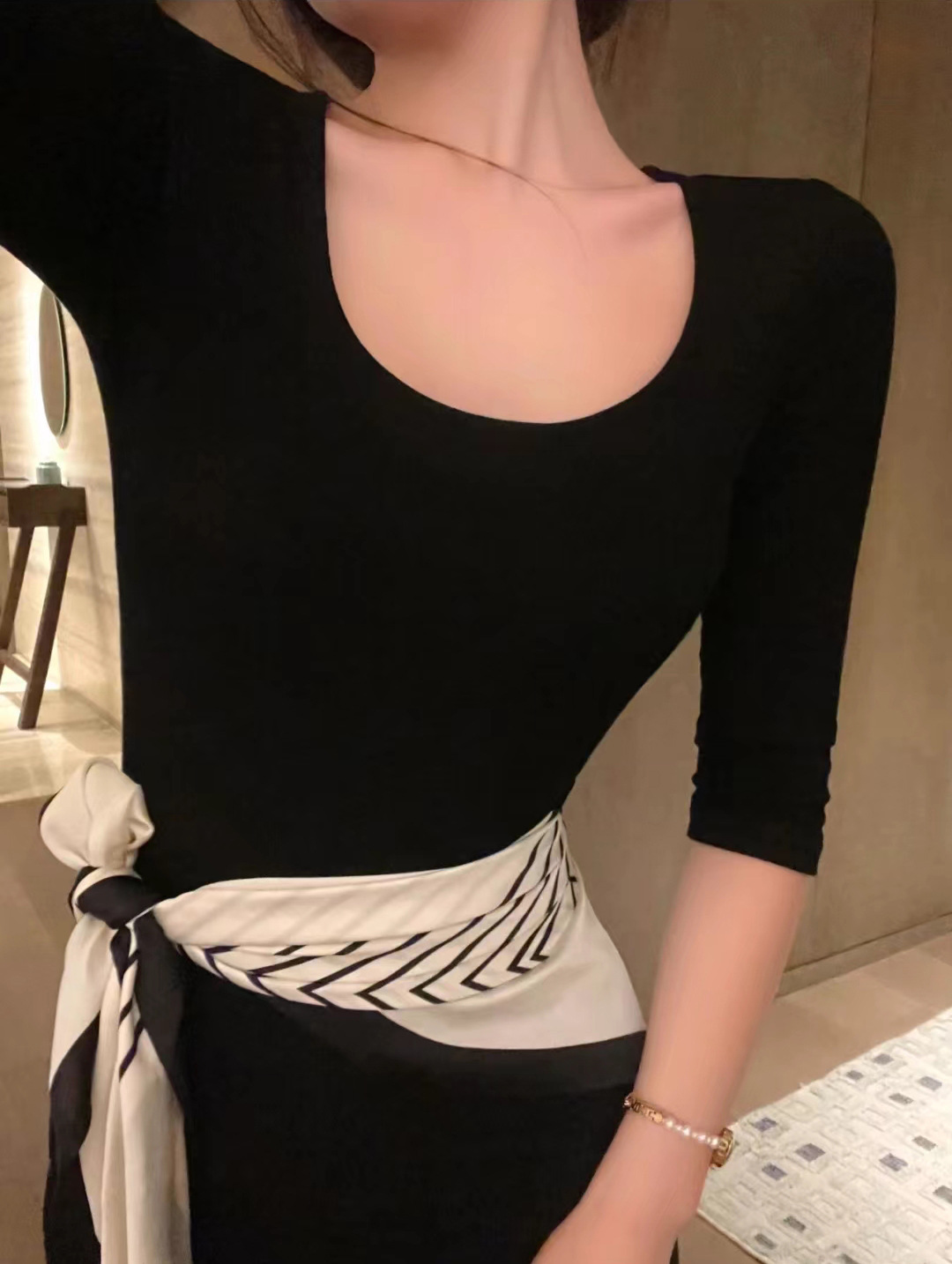 腰间丝巾90x90方巾女2024新款春款韩版黑白条纹领巾发饰扎头丝巾