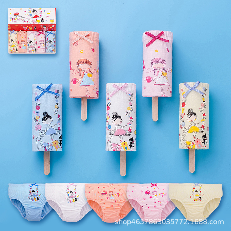 공장 직접 판매 새 여자/소년 속옷 클래스 A 순수 면화 만화 반바지 중소 어린이 팬티 5 팩