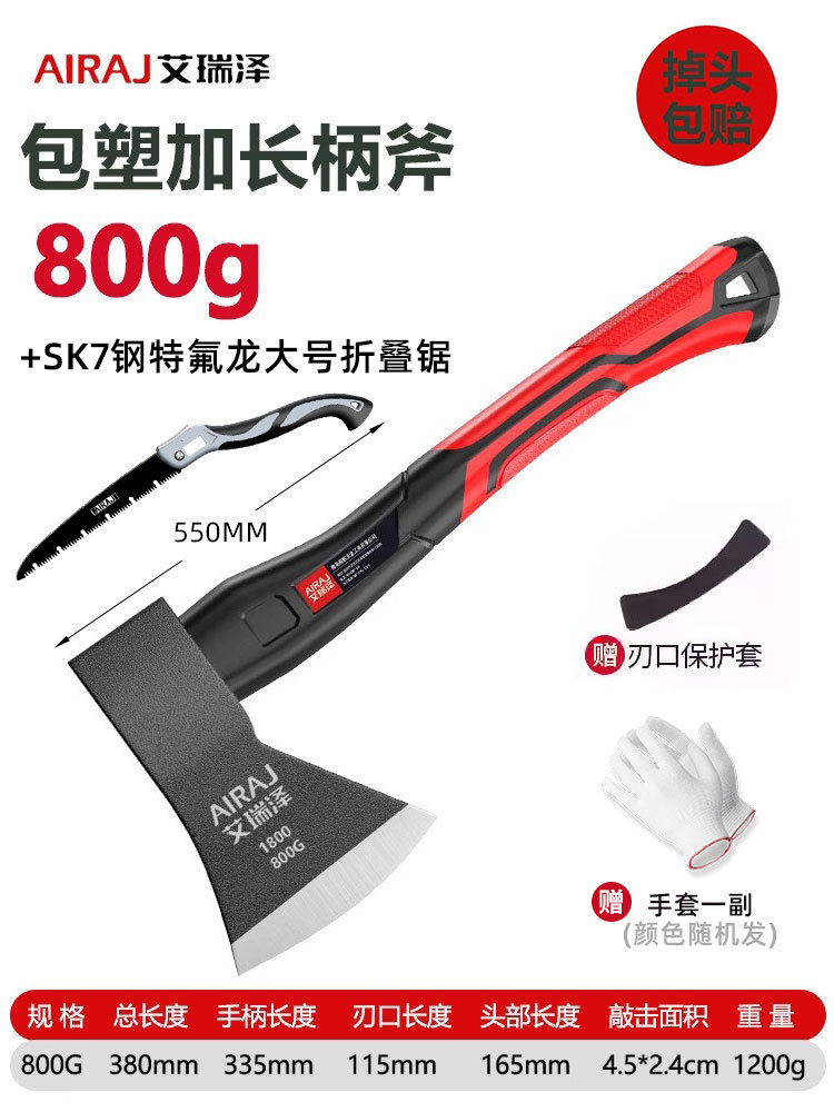 • [톱, 망치, 도끼 3가지 용도] 800G 플라스틱 코팅 확장 손잡이 도끼 + 대형 접이식 톱(칼날 보호 커버 + 장갑 포함)