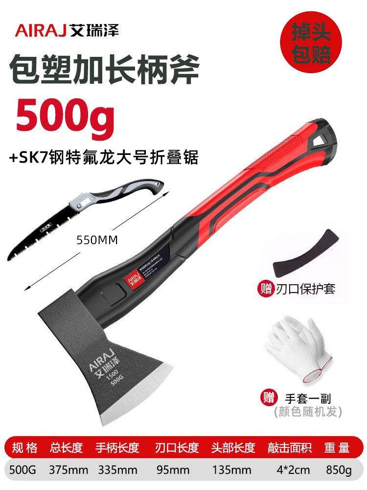 • [톱, 망치, 도끼 3가지 용도] 500G 플라스틱 코팅 확장 손잡이 도끼 + 대형 접이식 톱(칼날 보호 커버 + 장갑 포함)