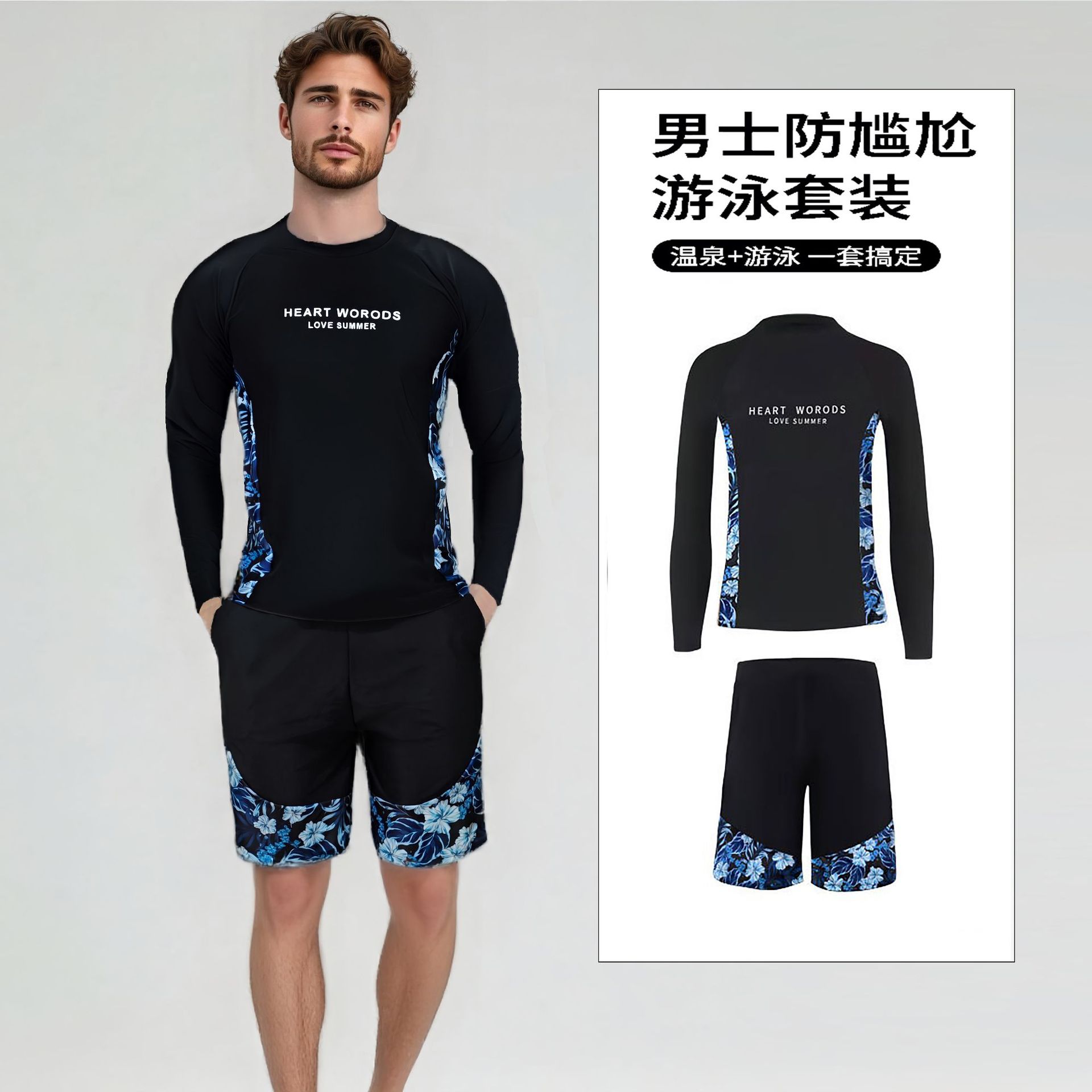 남성용 한국식 잠수복, 플러스 사이즈, 전문 스포츠 스플릿 자외선 차단 수영복, 속건성 긴팔 서핑 휴가복스토어 가기