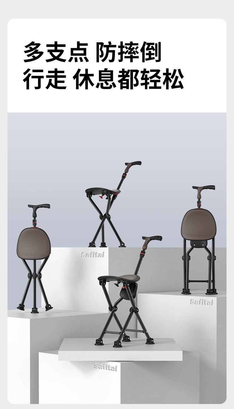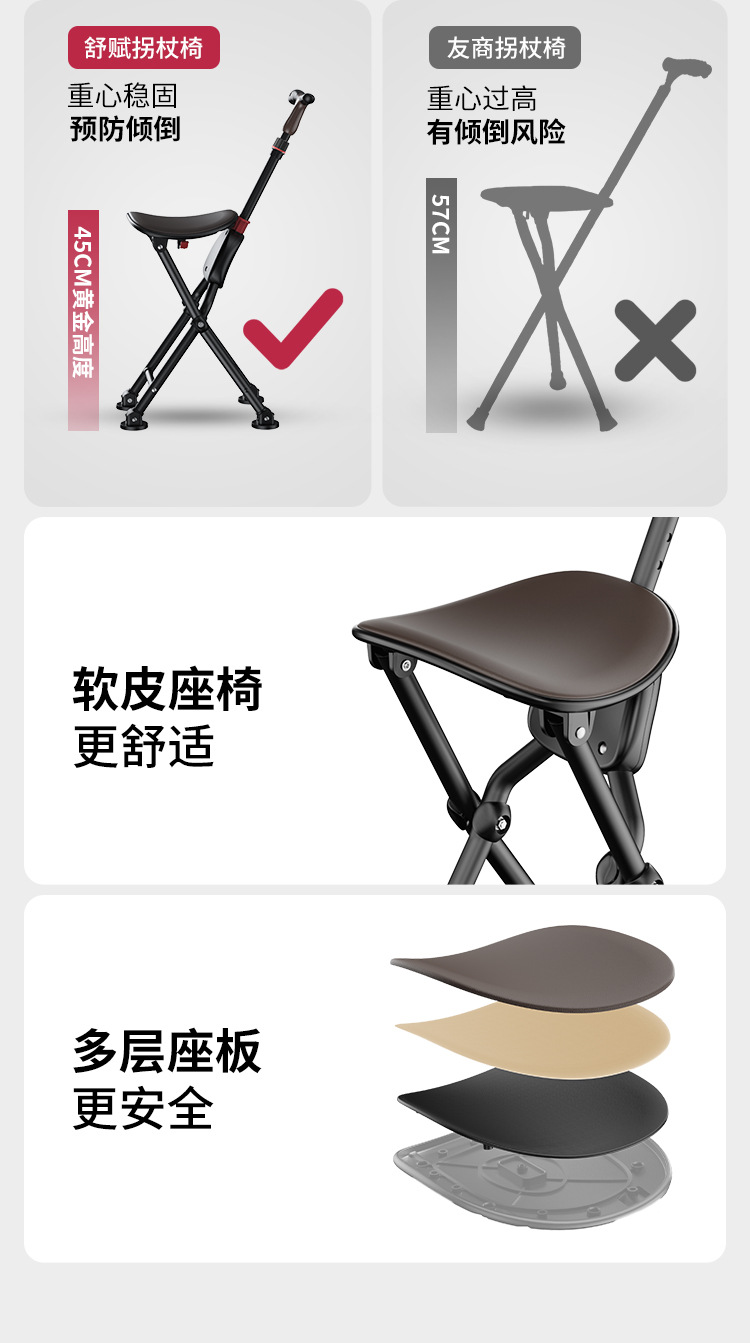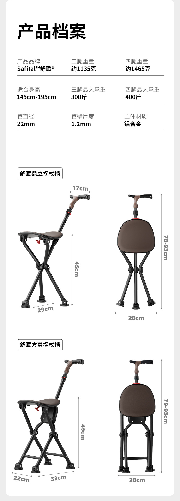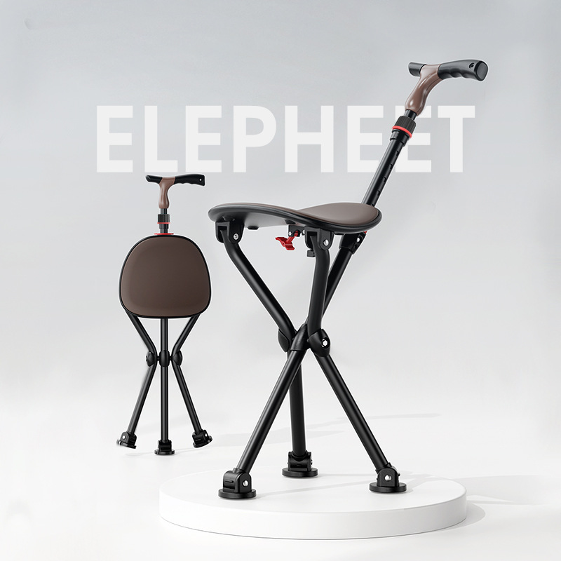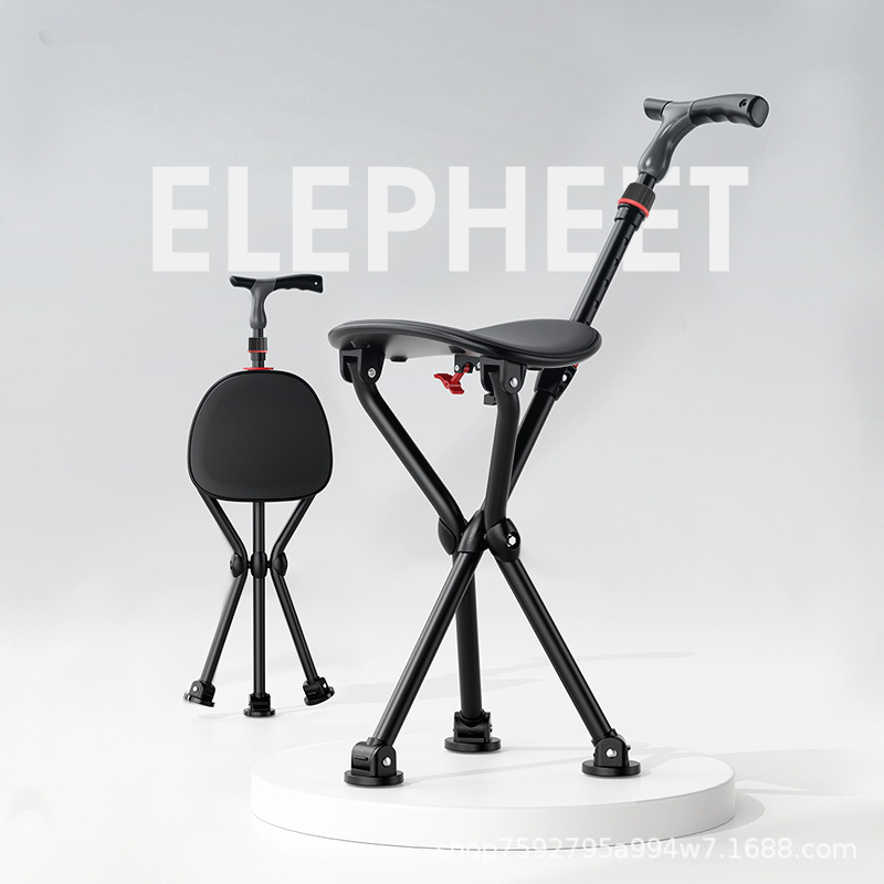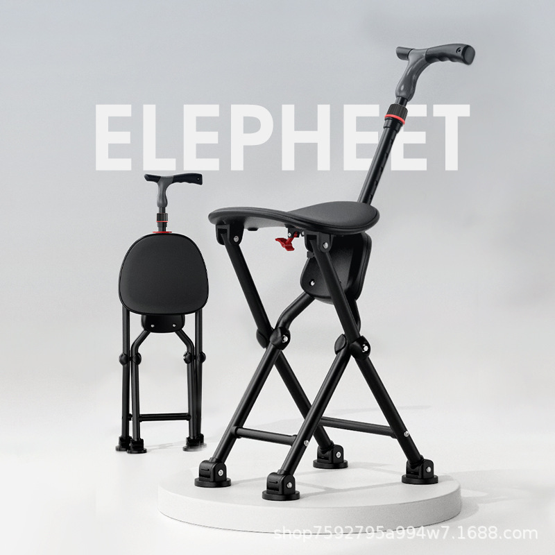 노인용 지팡이 의자, 중년 및 노인용 지팡이 의자, 4개의 다리가 있는 경량 휴대용 지팡이, 미끄럼 방지 4개의 다리 접이식 재활 보행 보조기