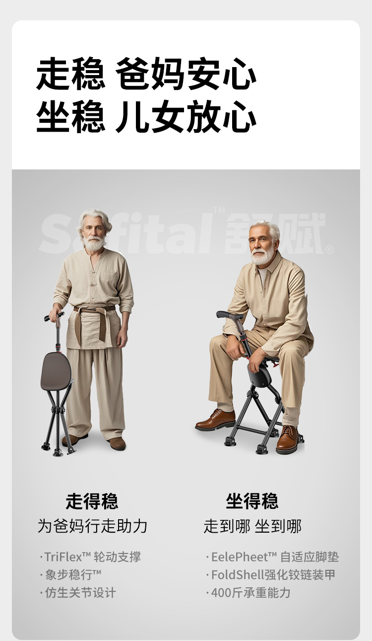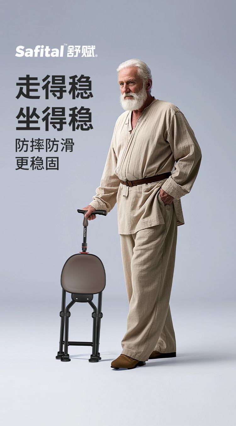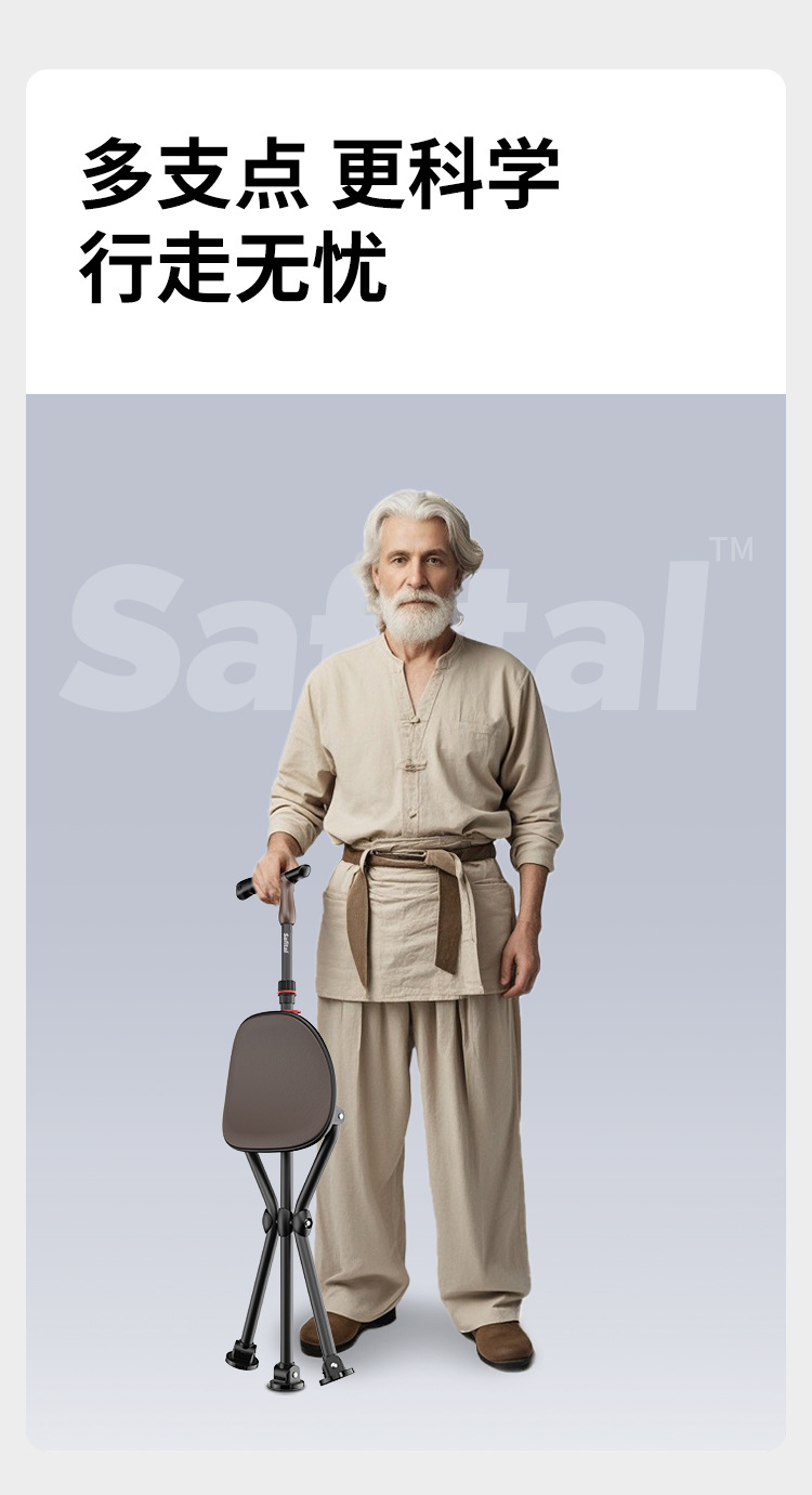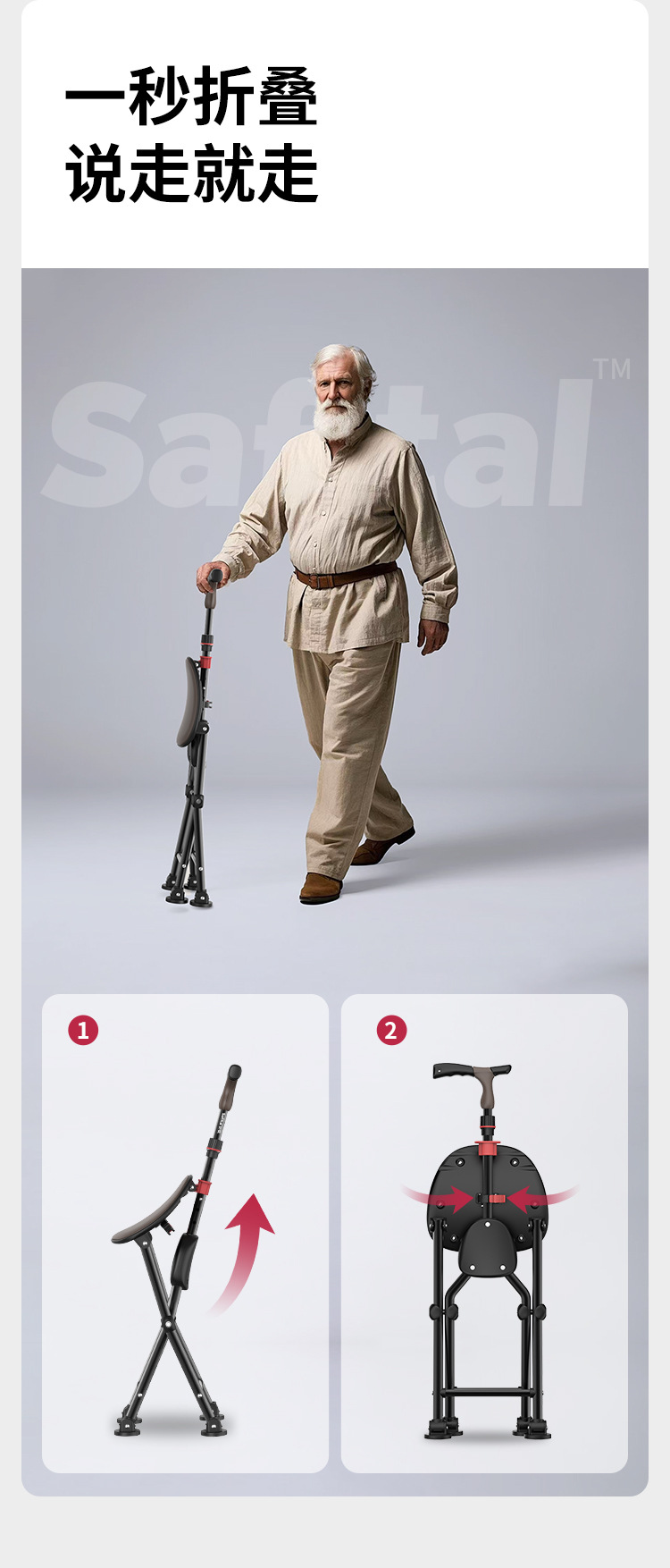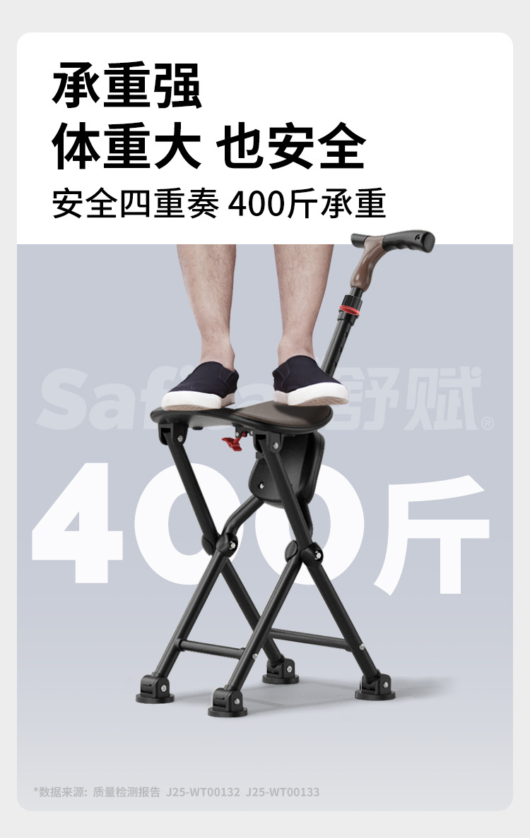 노인용 지팡이 의자, 중년 및 노인용 지팡이 의자, 4개의 다리가 있는 경량 휴대용 지팡이, 미끄럼 방지 4개의 다리 접이식 재활 보행 보조기